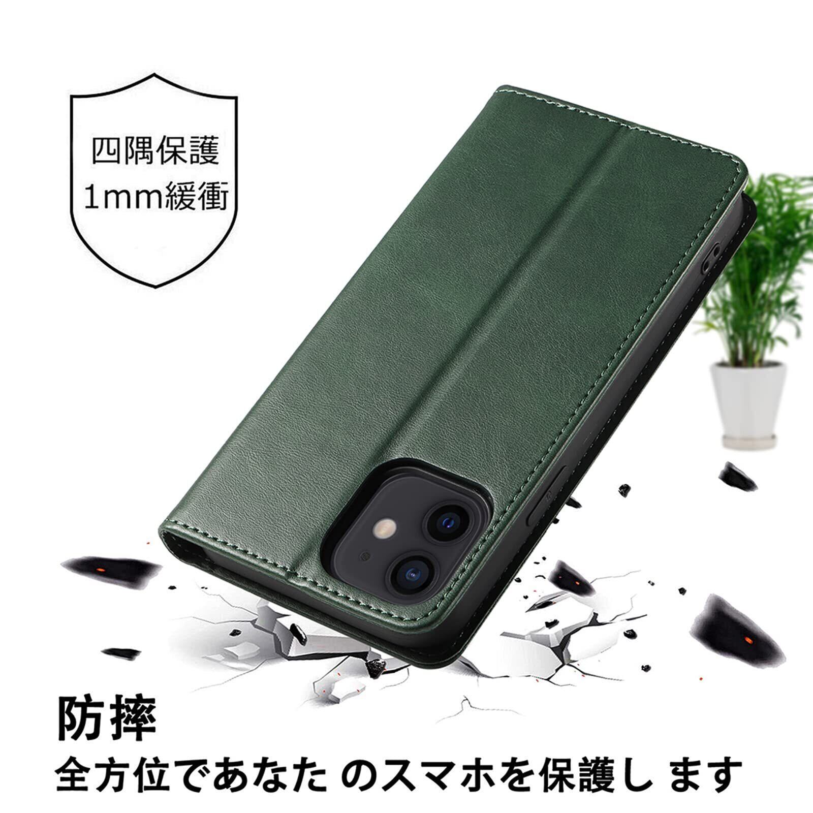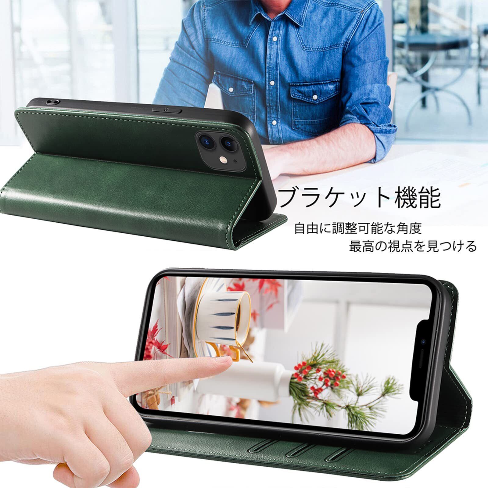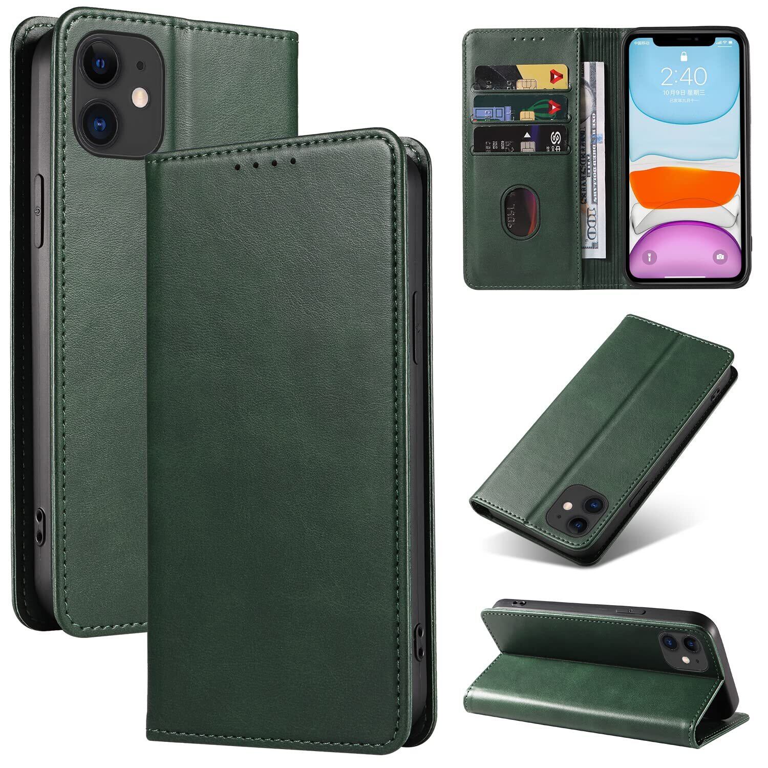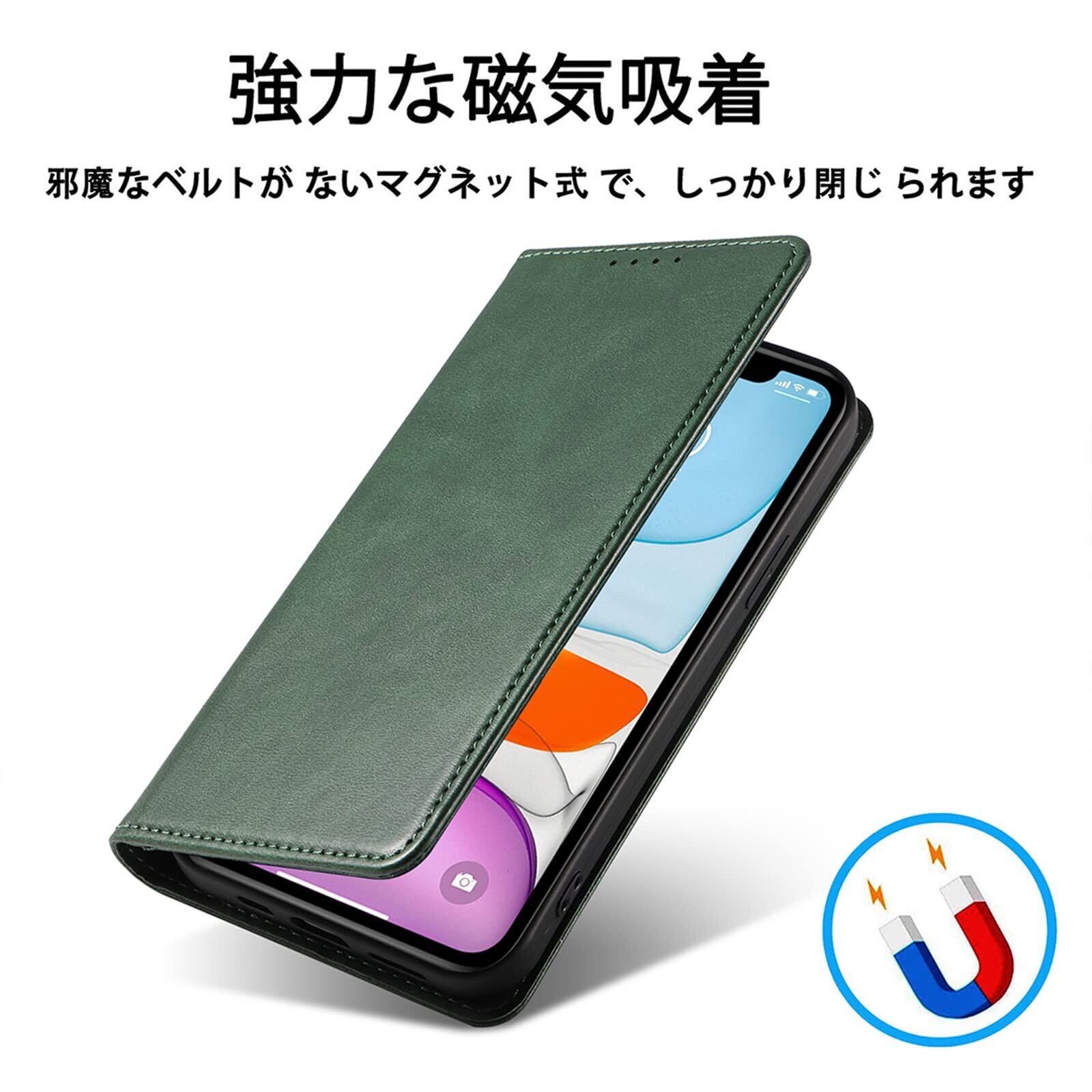 iPhone 11 ケース イフォン11 スマホケース 手帳型 携帯カバー レザー 耐衝撃 軽量 着脱しやすい 放熱性 マグネット式 カード収納 スタンド機能 iphone 11 対応 360度保護 PinLiSheng (グリーン, iphone 11)