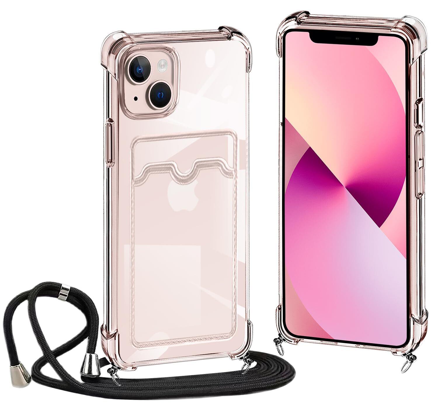 クリア iPhone 13 Mini 用 ケース ショルダー ストラップ付き iphone13mini カバー カード収納 アイフォン13ミニ スマホケース 背面 財布型 ケース 肩掛け 首かけ 斜めがけ ショルダー ケース 縄掛け カバー 耐衝撃 透明 TPU 薄型 軽量 スマホケース 調節可能な 全面保護 落下防止 紛失防止 シリコン ケース(クリア)