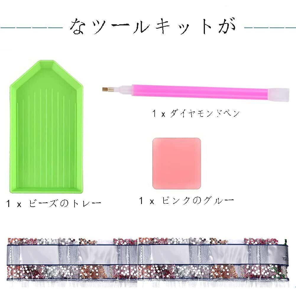 :40x30cm キャンバス、丸ビーズ、1 x ダイヤモンドペン、1 x ビーズのトレー、1 x ピンクのグルー