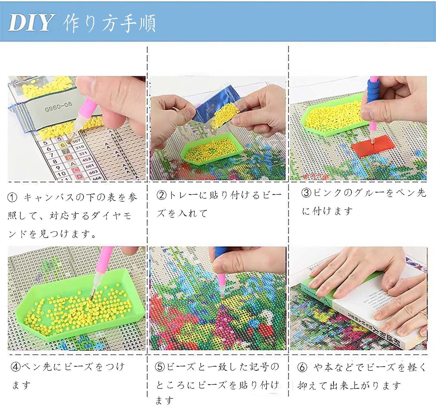 【セット内容】ダイヤモンドセット(同時にダイヤモンドの数を30%多く配備し、数量が十分であることを確保する)、ダイヤモンド粘着ペン、プラスチックトレイ、油絵布、粘土糊(フレームを含まない)を含む。キャンバスサイズ30×40cm。