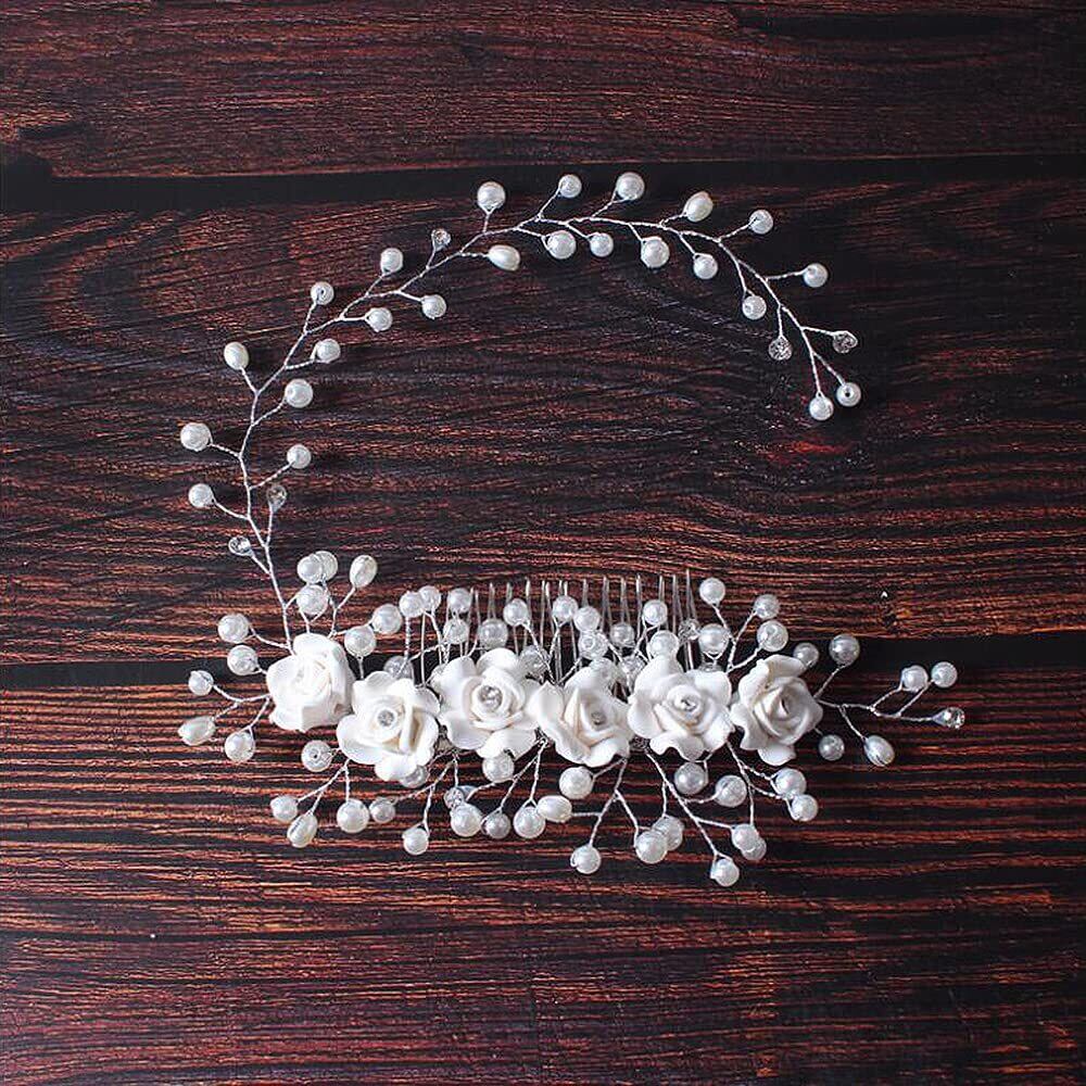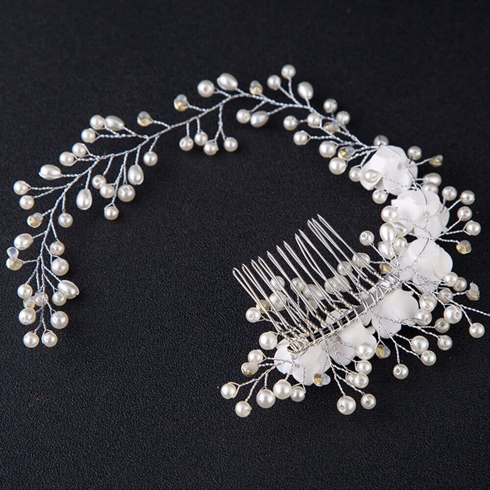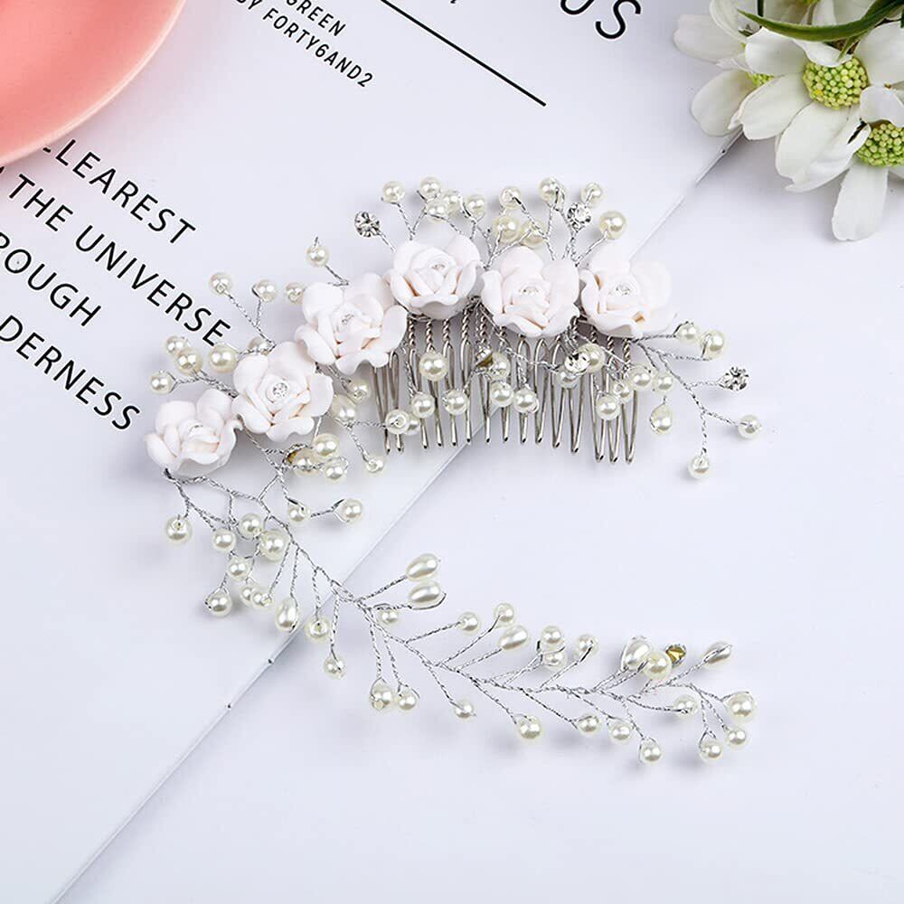 サムコス 髪飾り 花 ヘアクリップ 小花モチーフ カチューシャ 髪飾りリーフ パール ジュエリー おしゃれ 子供 入学式 卒業式 発表会 結婚式 写真撮影 (ホワイト, 34)