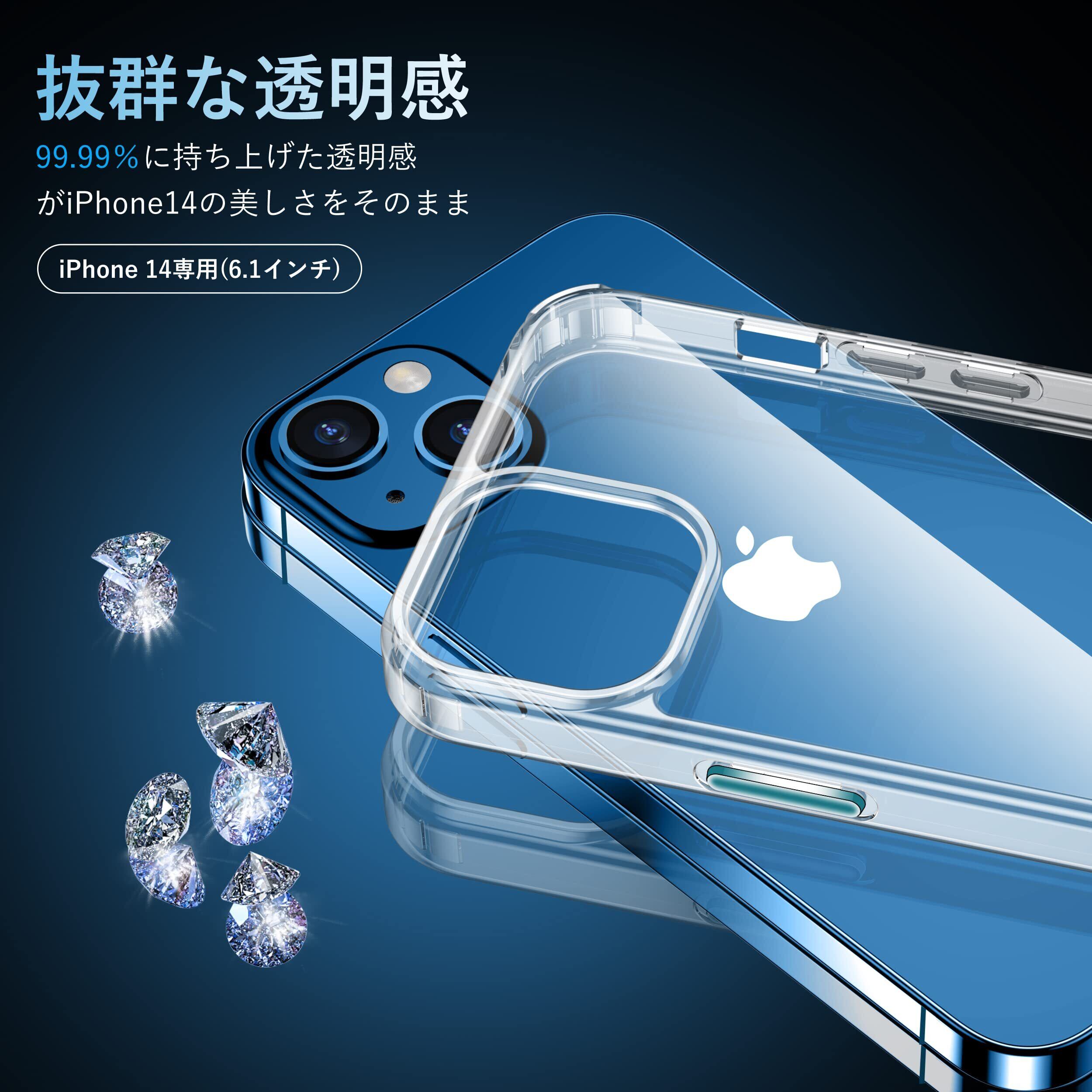 iPhone14 ケース クリア カメラレンズ保護付き 耐衝撃 黄ばみ防止 アイフォン14ケース 米軍MIL規格 耐久性 SGS認証 アイホン14 スマホケース ワイヤレス充電対応 あいふぉん14 カバー 6.1インチ