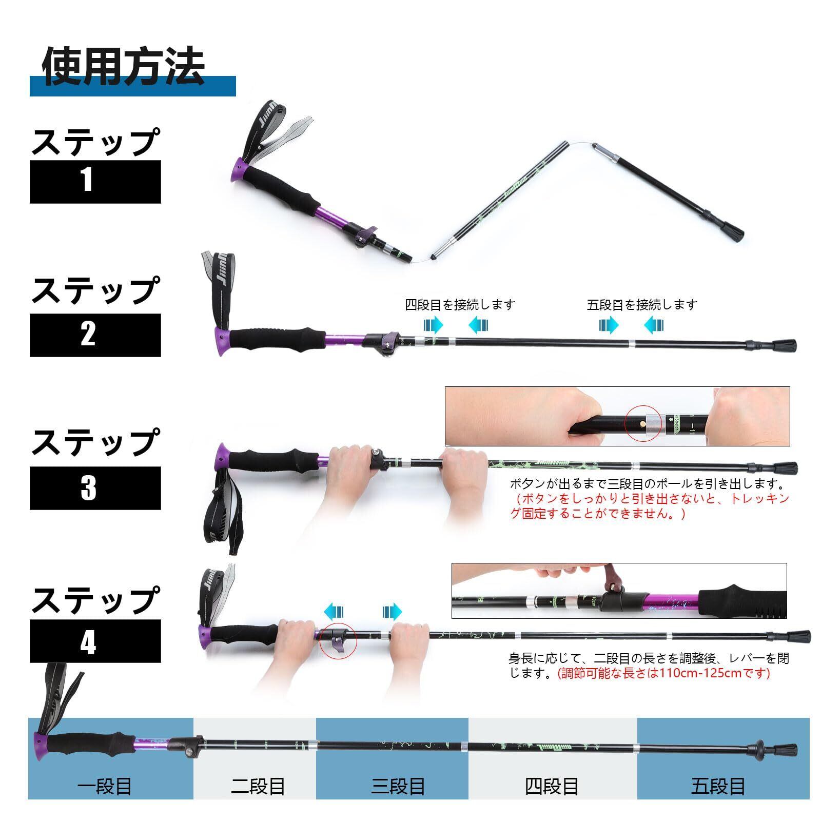 自在な長さ調整:杖身の長さを 110cm から 130cm まで自由に調整できます。身長や体型に関係なく、あなたに最適な長さを見つけることができます。また、山道の傾斜や地形の変化にも柔軟に対応し、安定したサポートを提供します。