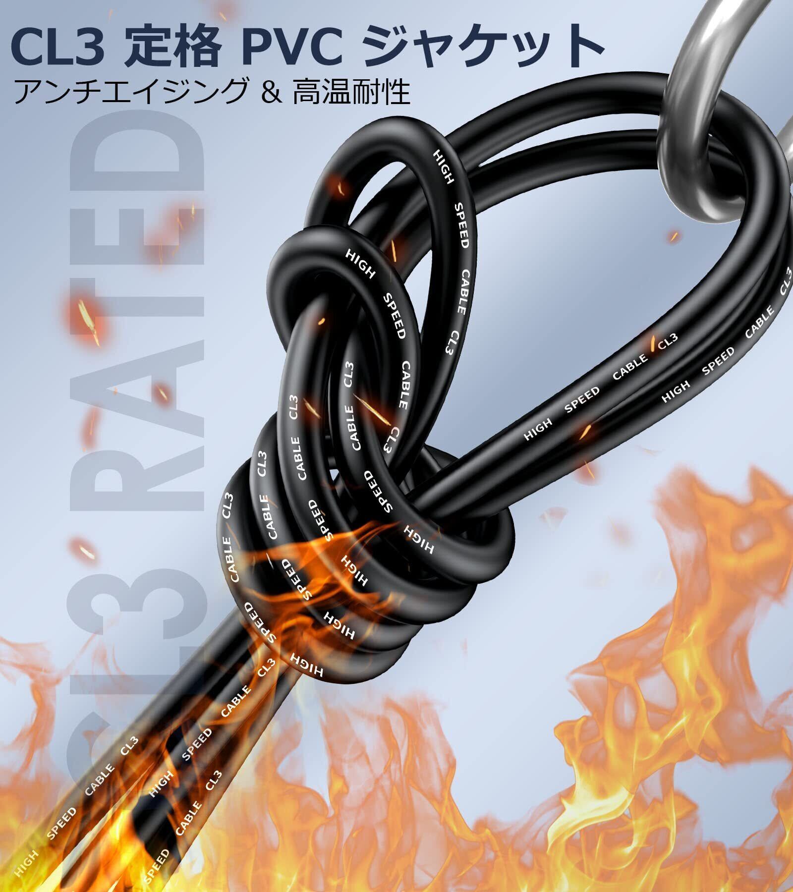 【CL3規格】: 難燃性と丈夫なプラスチック シースを備えた壁内設置用の CL3 定格 HDMI ケーブルです。
