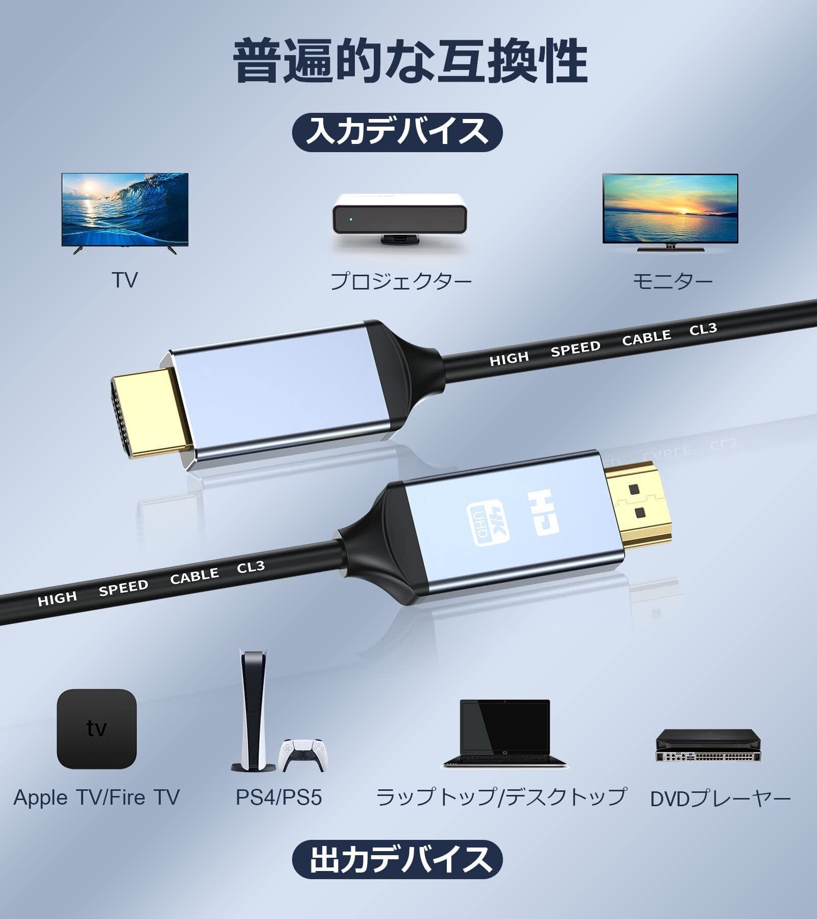 【HDMI多種対応】: 2160p、1440p、1080p、1080i、720p、480p、UHD、FHD、Ultra HD、TrueHD、3D、2Kなど4Kテレビやモニター用。 HDMIコードは、Apple TV、Dell、LG、Panasonic、Sony、Samsung、TCL、Vizioなどのブランドの4K TV、ノートパソコン、モニターを含むHDMIポートを備えたすべてのデバイスで動作します。