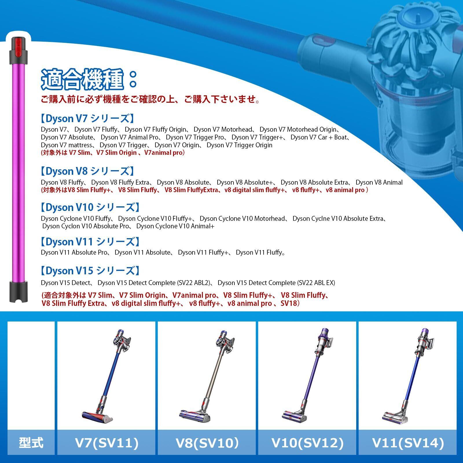 ダイソン V7 用 延長ロングパイプ Dyson V7 V8 V10 V11 V15 シリーズ 対応 掃除機用交換部品 パープル 互換品(非対応はSlim,v8 digital slim fluffy+、 v8 fluffy+,v8animal pro 、V7animal pro、SV18)