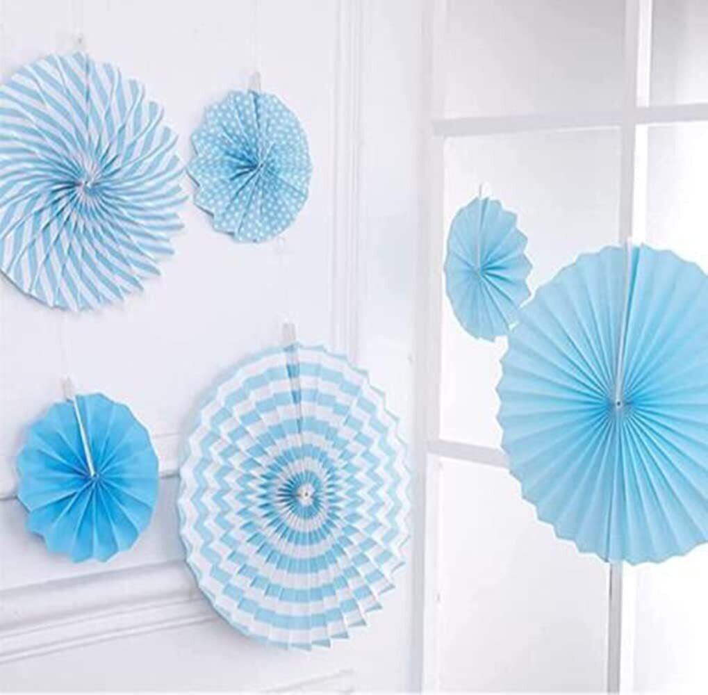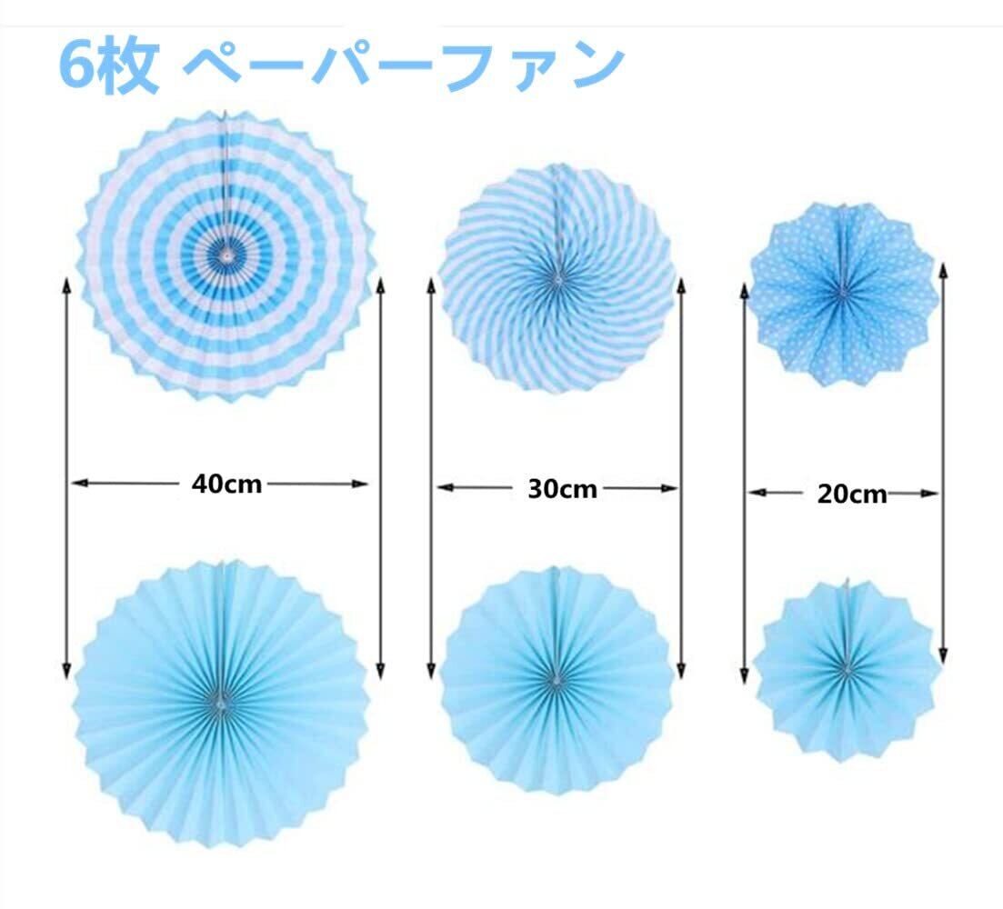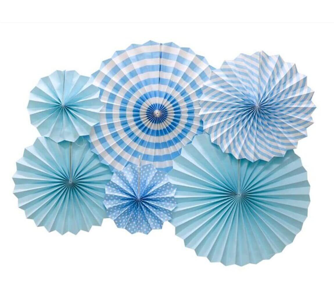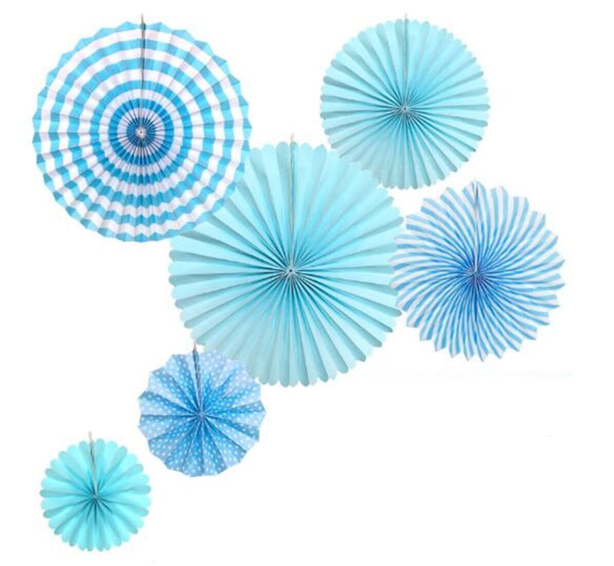 ペーパーファン パーティー 装飾 女の子 誕生日 結婚式 (6点セット)扇子の組み合わせ バレンタイン お祝い 飾り お部屋の飾 男の子 誕生日飾り付けセットベビーシャワー 撮影 写真背景 (青)
