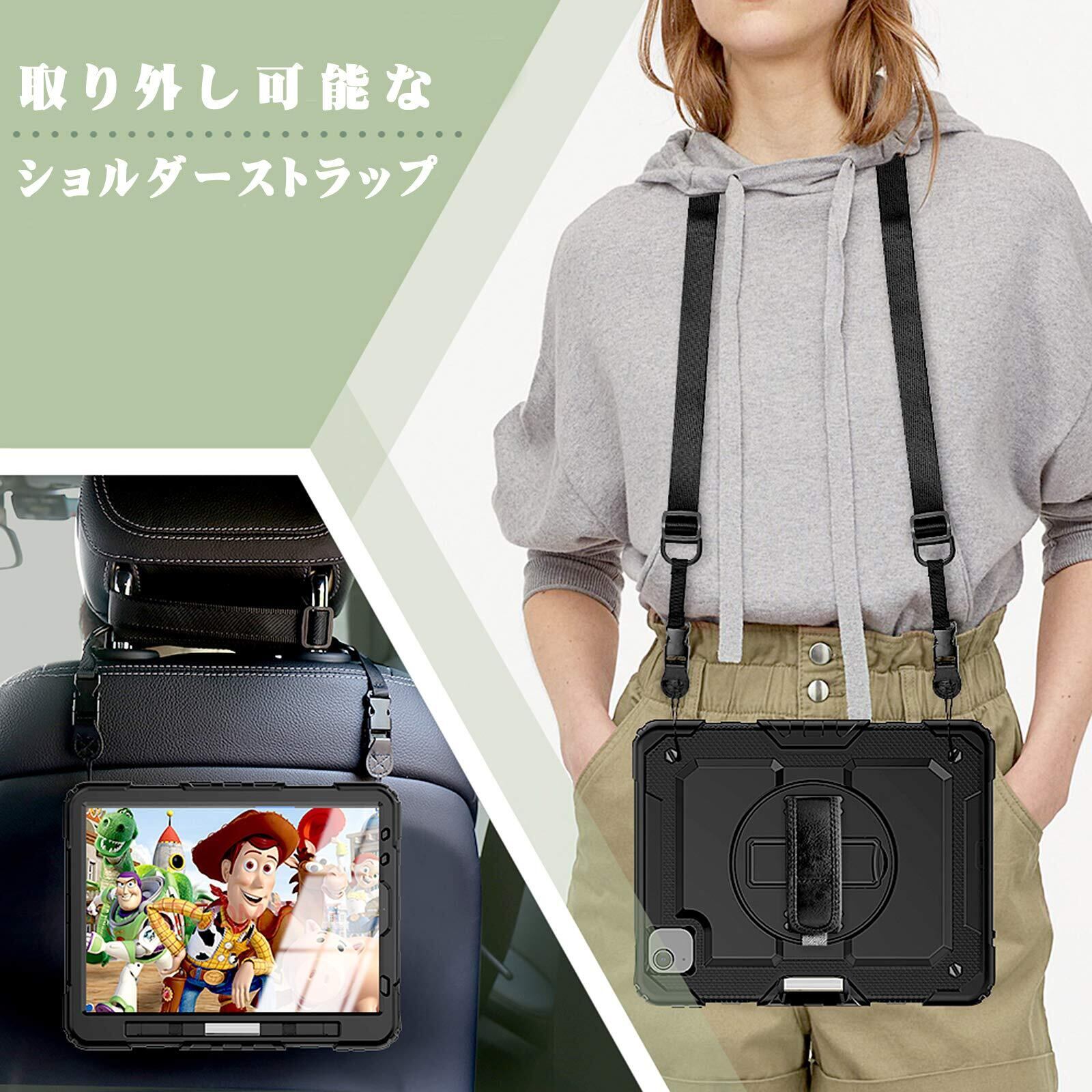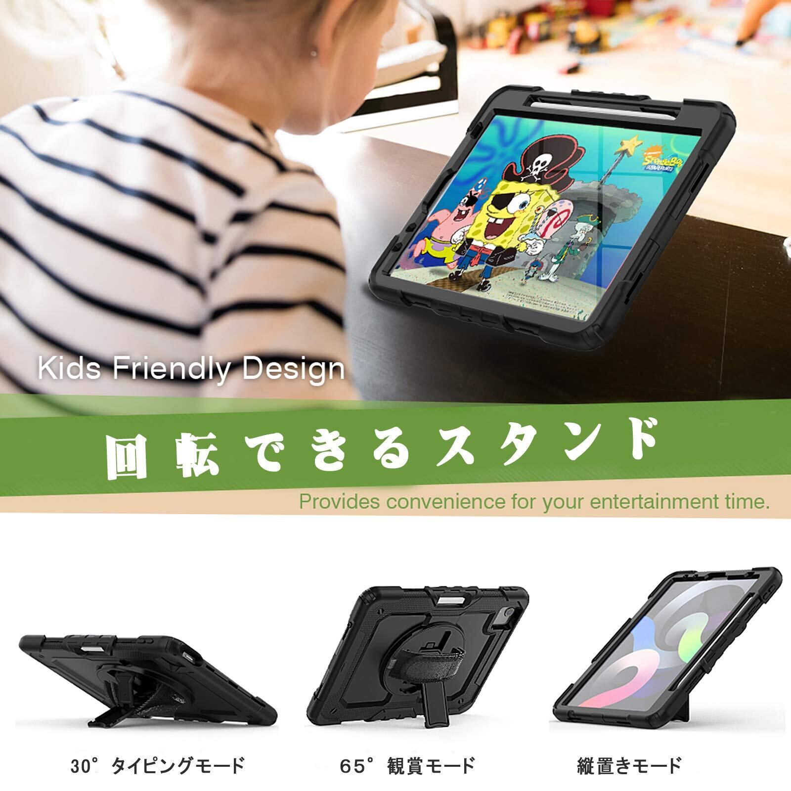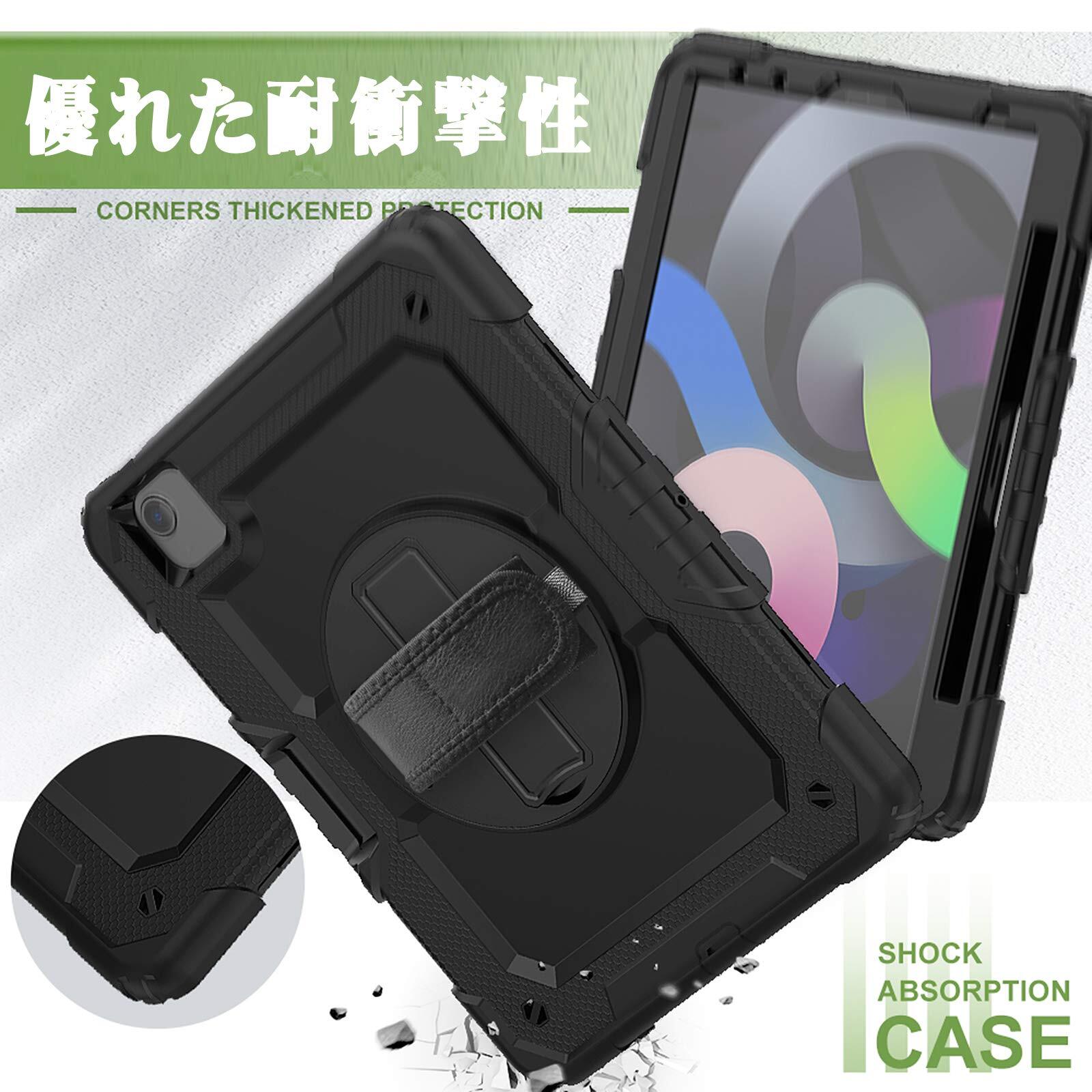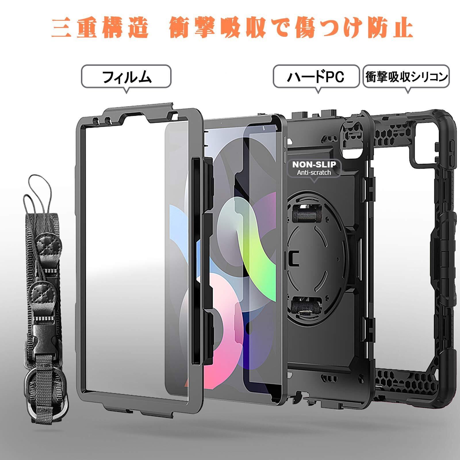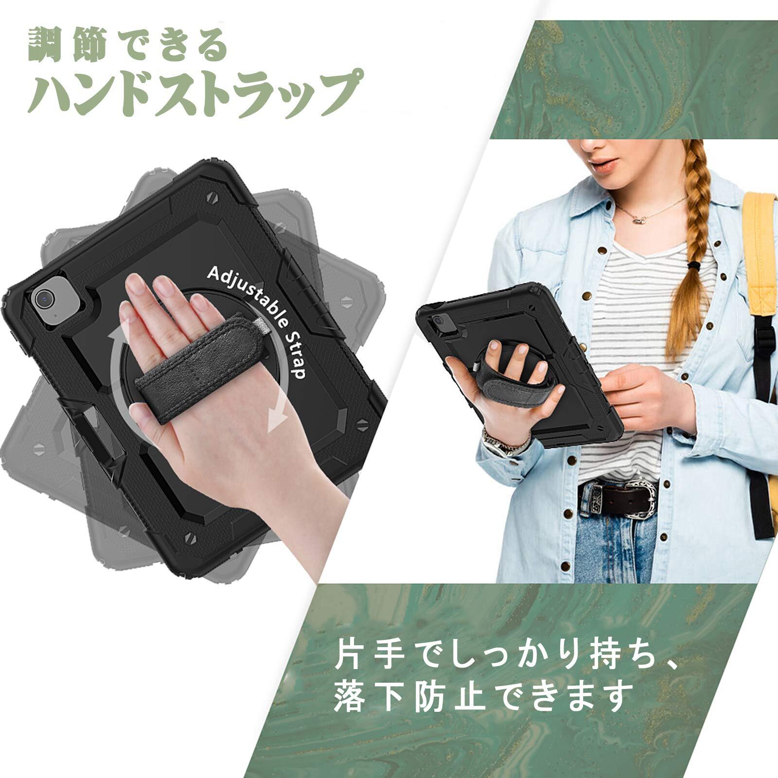 SIBEITU iPad air 第5世代/第4世代 ケース iPad Pro 11 インチ ケース 2020 2018 iPad 10.9 ケース 耐衝撃 傷防止 三層保護 「360°回転スタンド」 「360度回転握り方」 「内蔵保護フィルム」 「調節可能」 頑丈 丈夫 ハンドストラップ ワイヤレス充電対応 防塵 多機能 実用 強い衝撃保護性能 快適 専用 ケース(黒い)
