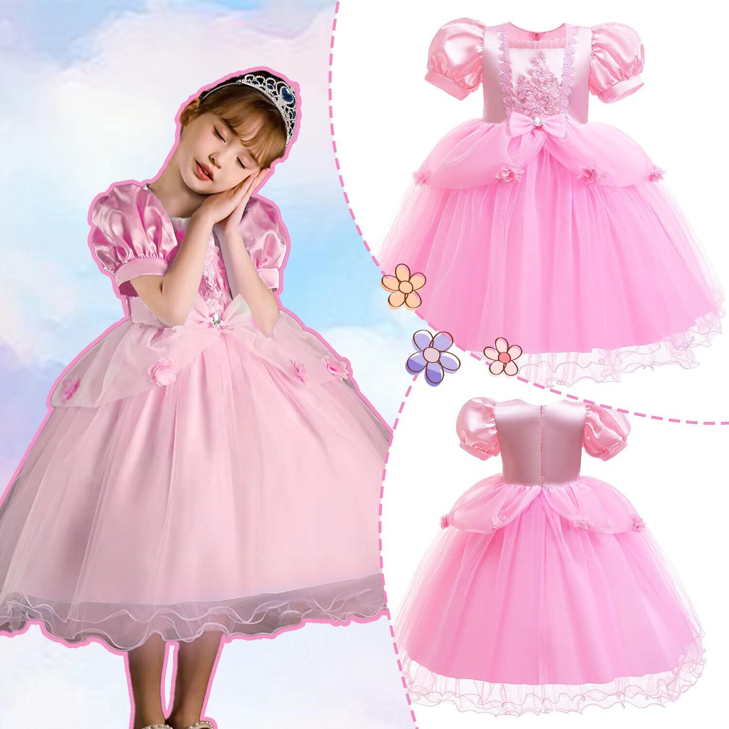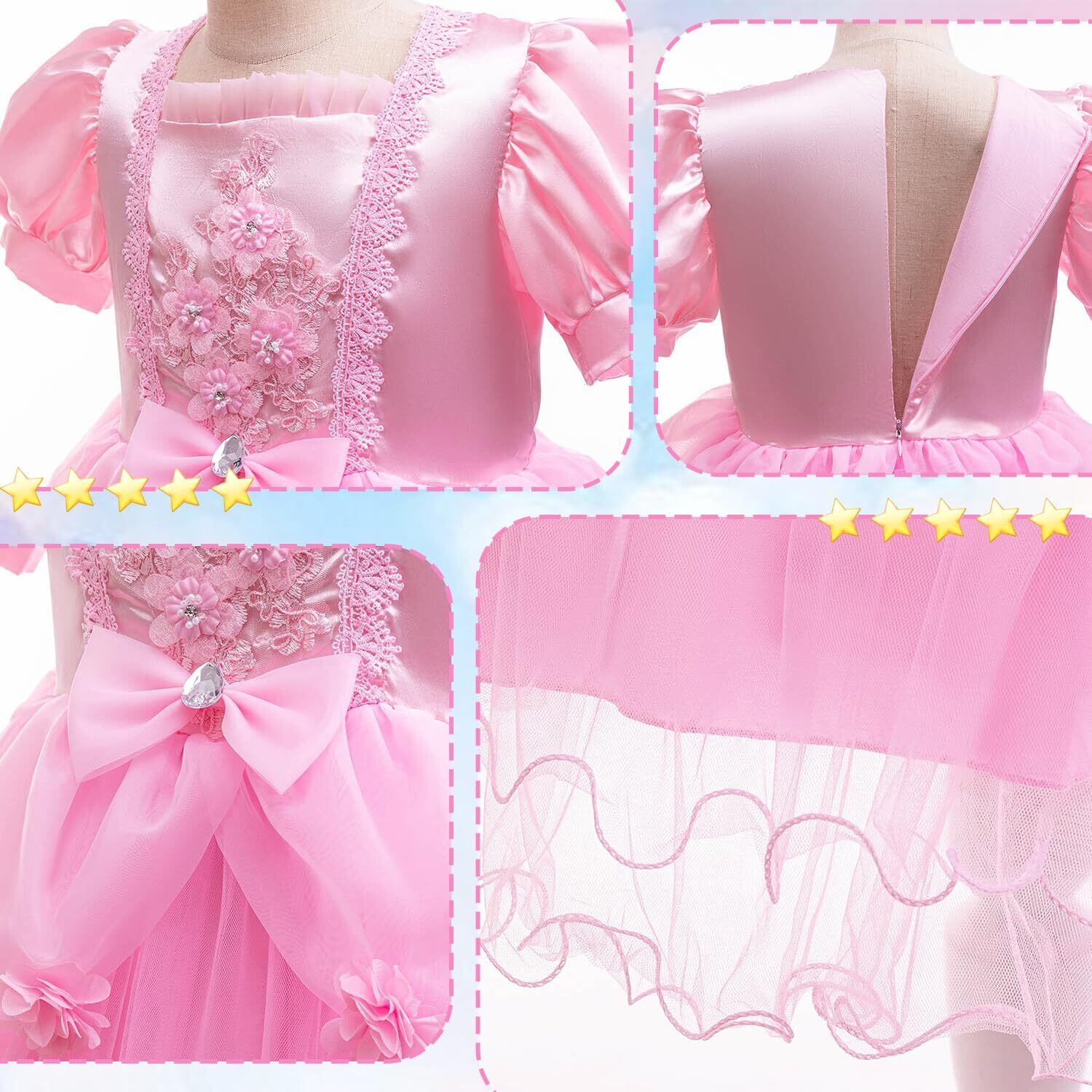 【付属アクセサリー】各ドレスには、プリンセスの王冠、魔法の杖、ネックレス、ブレスレット、リング、ヘアアクセサリーなどの小物が付属しています。これにより、小さな女の子たちは夢中のプリンセスにより近づき、役割演技の楽しさが増します。