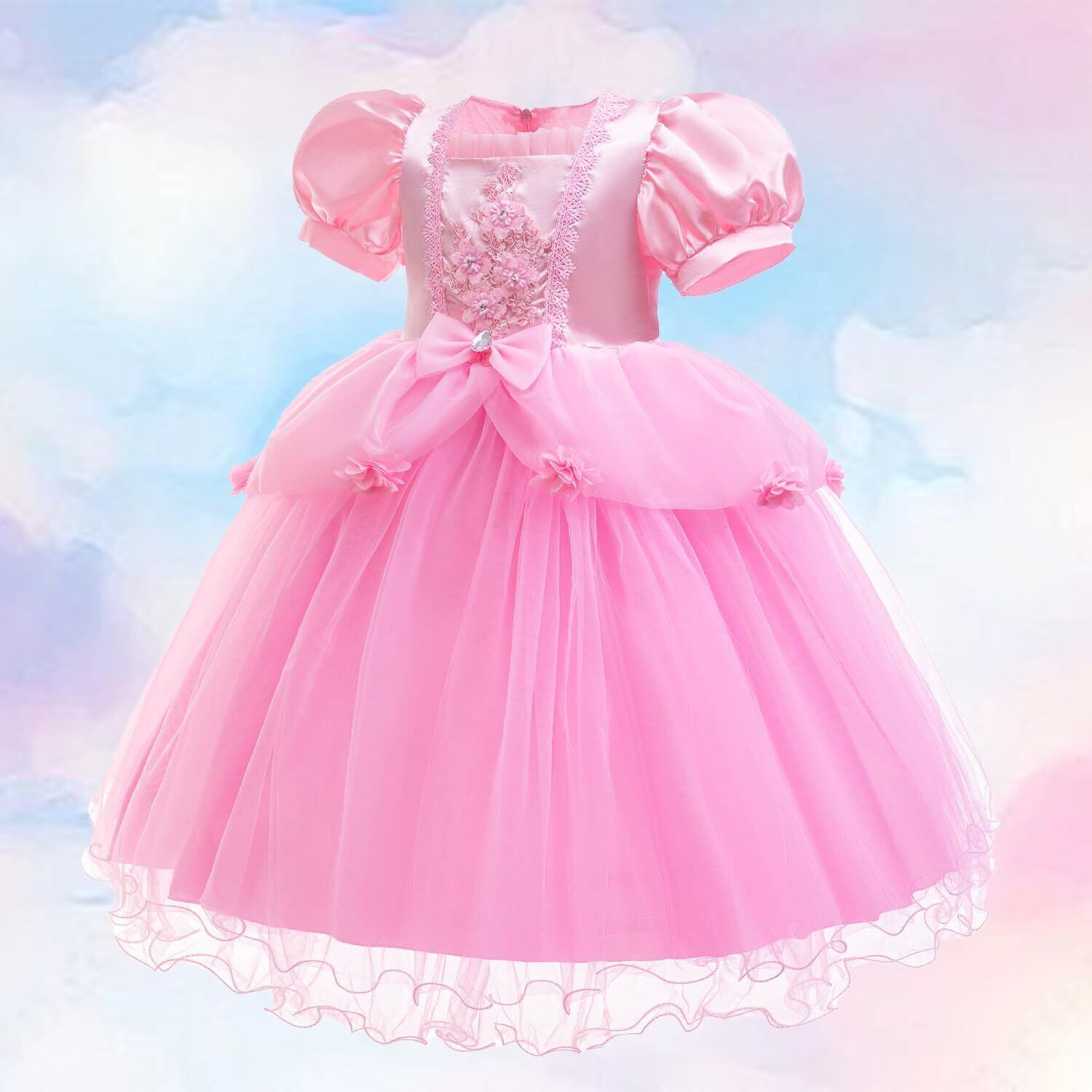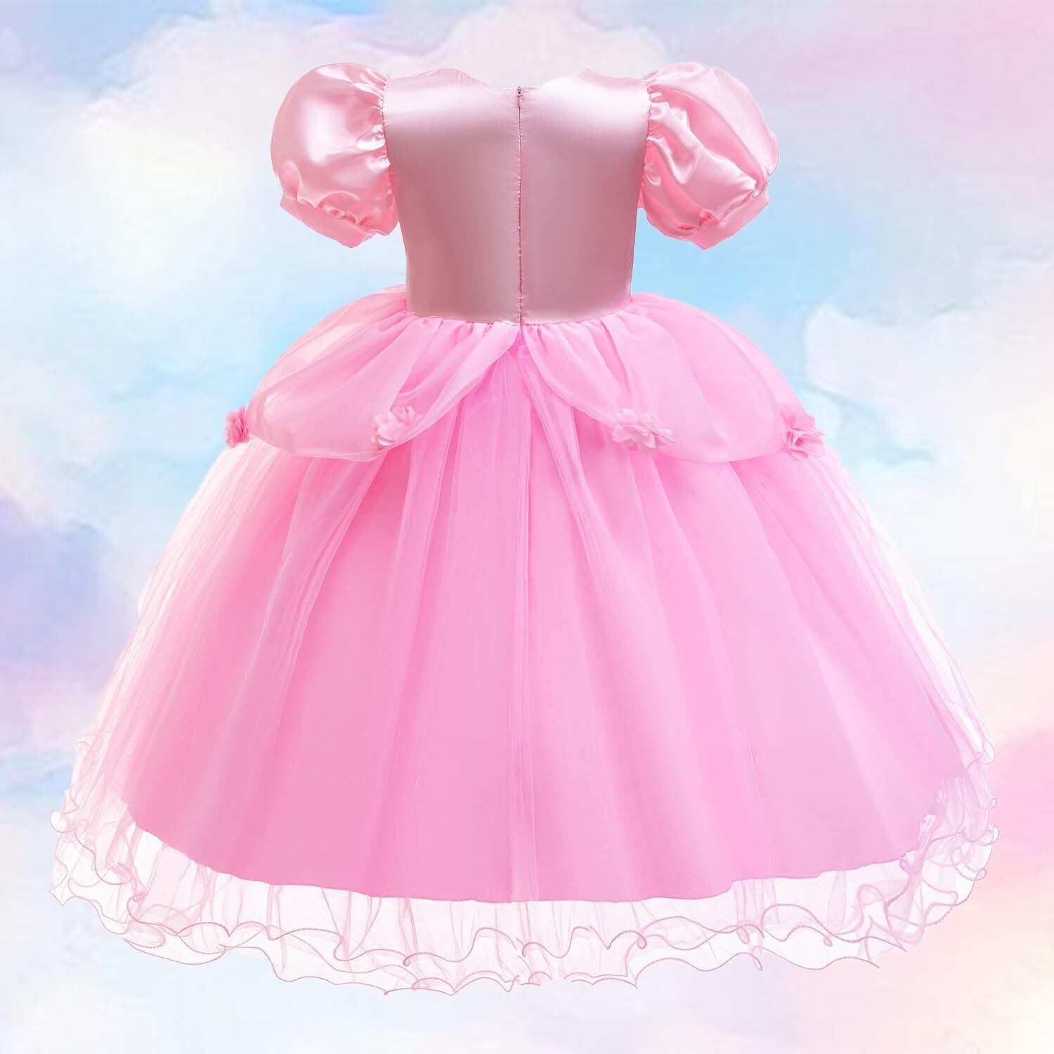 【シンデレラ風プリンセスドレス】ディズニーのクラシックキャラクター、シンデレラをインスピレーションに、お子様のために魅力的なプリンセスドレスをデザインしました。ヨーロッパ風の広い袖口と多層のふんわりとしたスカートで、お子様をまるでおとぎ話の中のプリンセスのように華麗に演出します。青色とピンクを中心としたカラーは、ロマンチックな雰囲気を放ちます。美しい刺繍とパールの装飾は、上品さと品質を際立たせています。特別な魔法の杖や王冠と合わせれば、お子様のプリンセスの夢を叶えることができます。