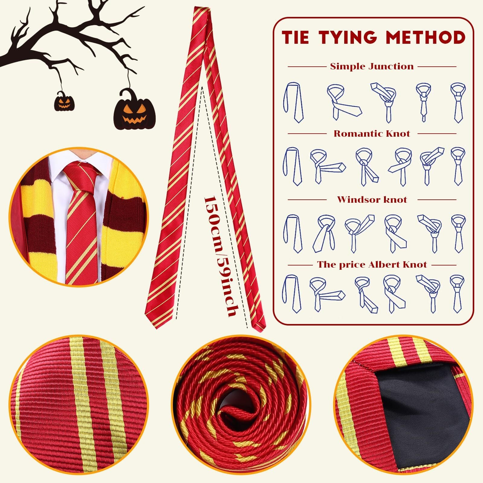 [Formemory] ハロウィン グリフィンドール コンプリート 魔法 コスプレ 衣装5点セット 7つサイズ コスプレ コスチューム(ローブ + 眼鏡 + ネクタイ + スカーフ+魔法の杖)