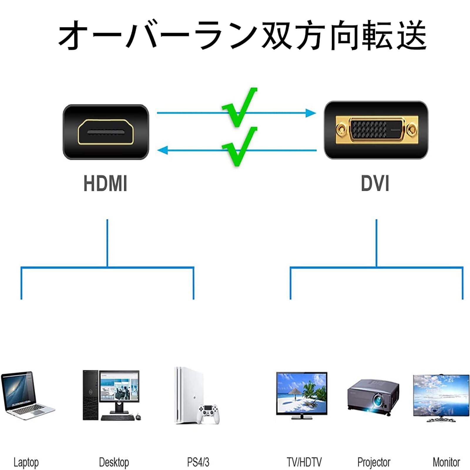 【双方向変換】双方向HDMI DVI変換ケーブルはDVI出力ポートを搭載したパソコングラフィックカードをHDMI入力ポートを搭載したモニター、HDTVなどに接続できます。