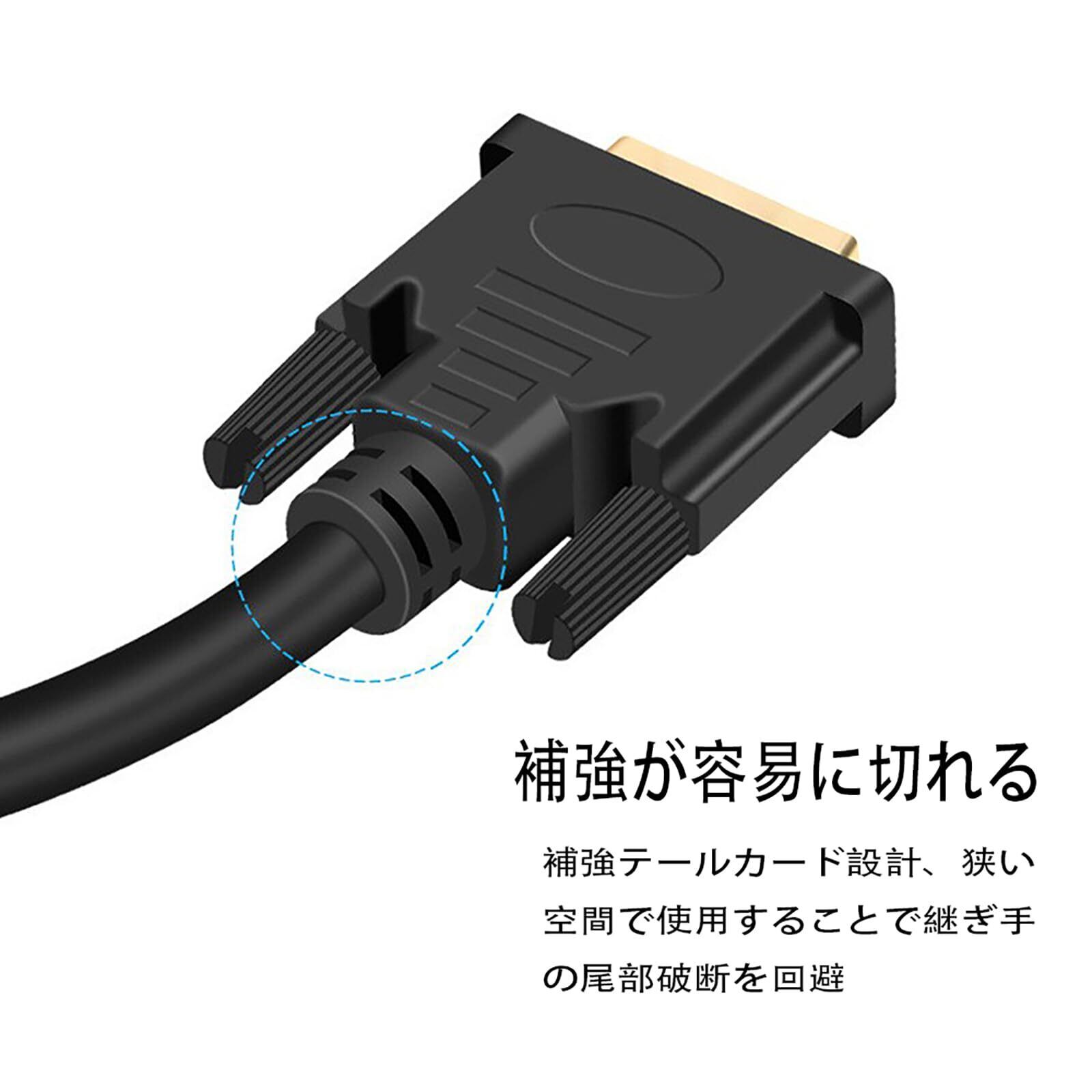 【優れた耐久性】HDMI DVI ケーブルは耐腐食性の金メッキコネクター、純銅導体、箔&編組シールドの組み合わせで、クロストークを最小限に抑え、ノイズを抑制し、電磁干渉(EMI)および無線周波数干渉(RFI)から保護します。耐久性に優れたストレインリリーフコネクターを採用され、指締めネジと握りやすいトレッドで安全な接続を提供する同時にケーブルの挿抜も簡単になります。抜群のケーブル性能を実現するだけではなく、長期使用でも接触不良、信号劣化、断線の心配がなく、優れた耐久性を確保します。