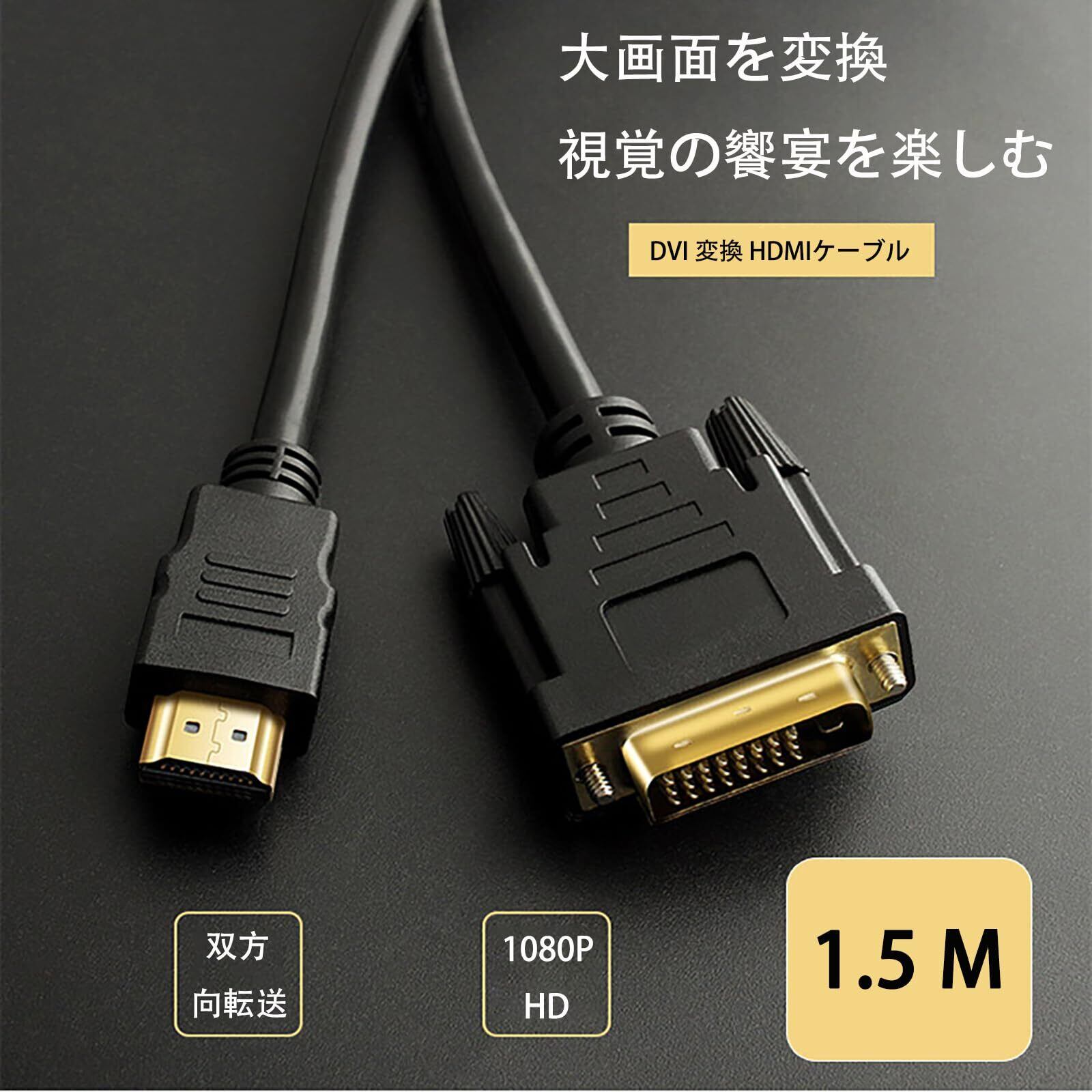 DVI 変換 HDMIケーブル,双方向伝送 DVI 24pinオス to HDMI オス 金メッキ 適用コンピューター,デスクトップ,ラップトップ,PC,モニター,プロジェクター,HDTV,Raspberry Pi,Roku,Xboxに対応(1.5M)RuiMi
