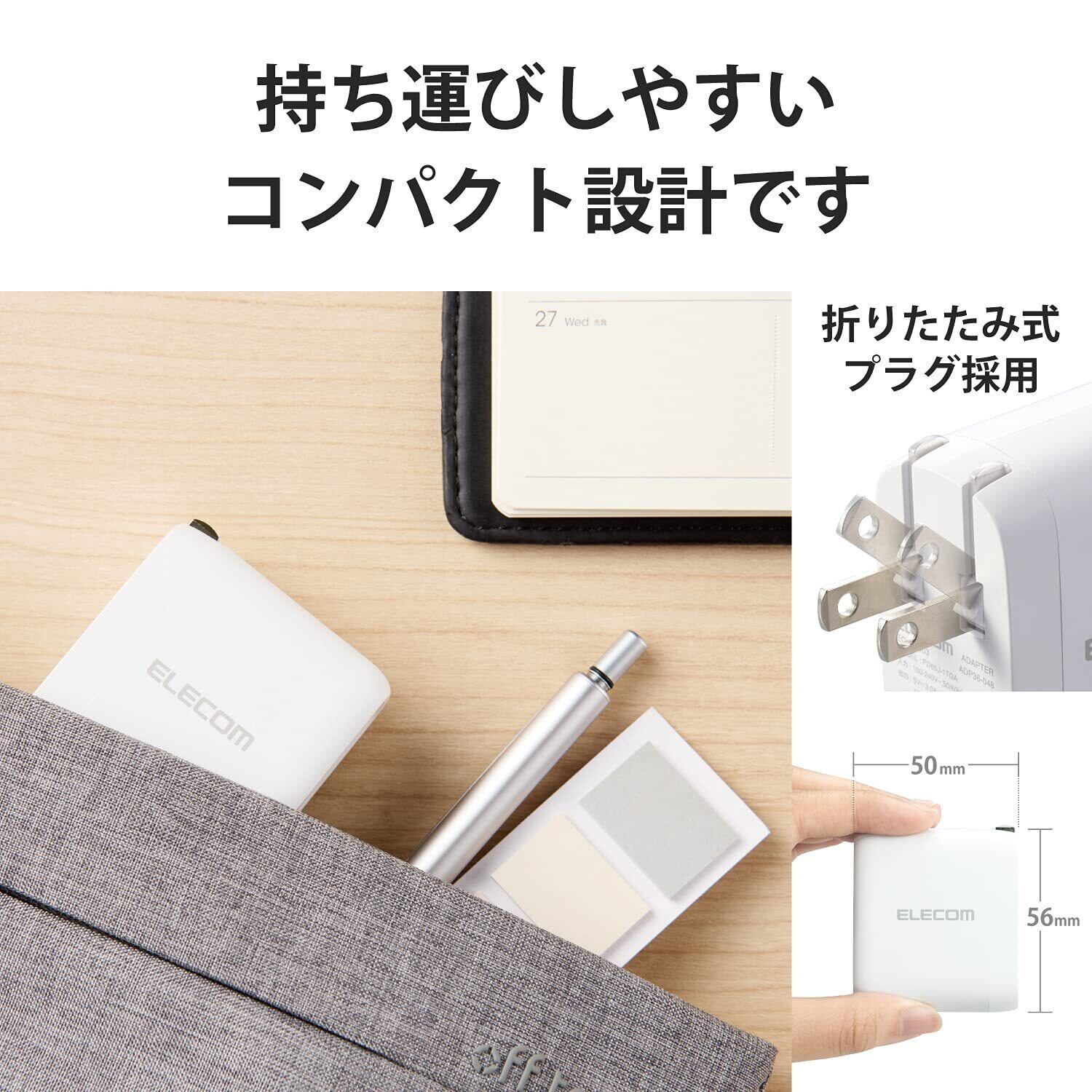 エレコム 充電器 Type-C USB-C 65W USB PD対応 スイングプラグ ホワイト 【Macbook/ノートPC/iPhone15/iPad など各種対応】 EC-YAC03WH