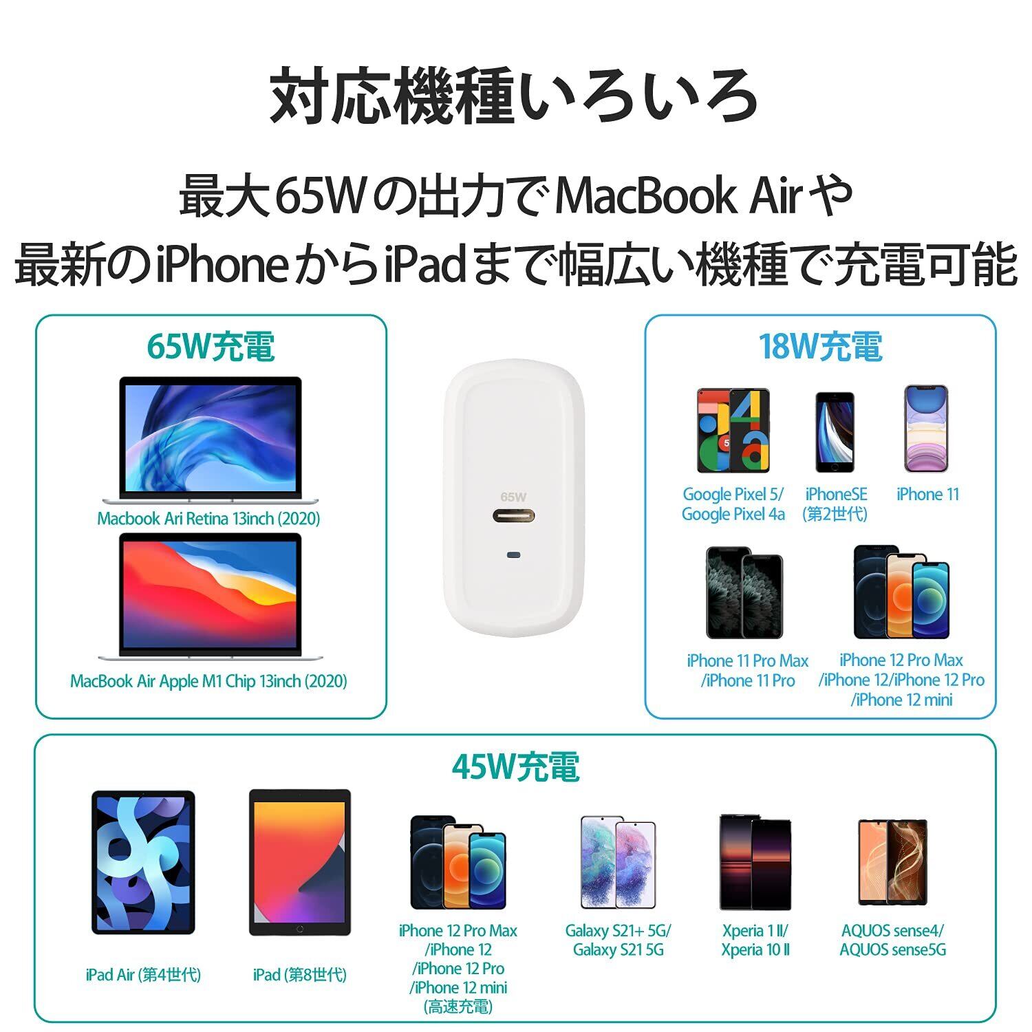 ■対応機種:USB Type-C(TM)(USB-C(TM))ポートからUSB Power Delivery 3.0(65W)の規格内で充電が可能な機器