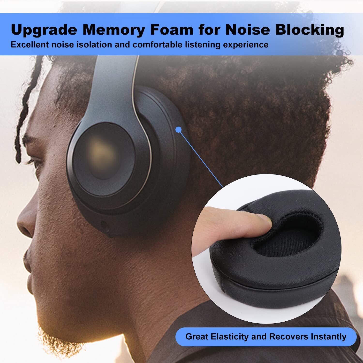 Beats Solo 2 & Solo 3ワイヤレスオンイヤーヘッドフォン用のプロフェッショナルな交換用イヤーパッド、プレミアムヘッドフォンイヤパッドクッション、より柔らかい革と高弾性スポンジメモリーフォーム、ブラック