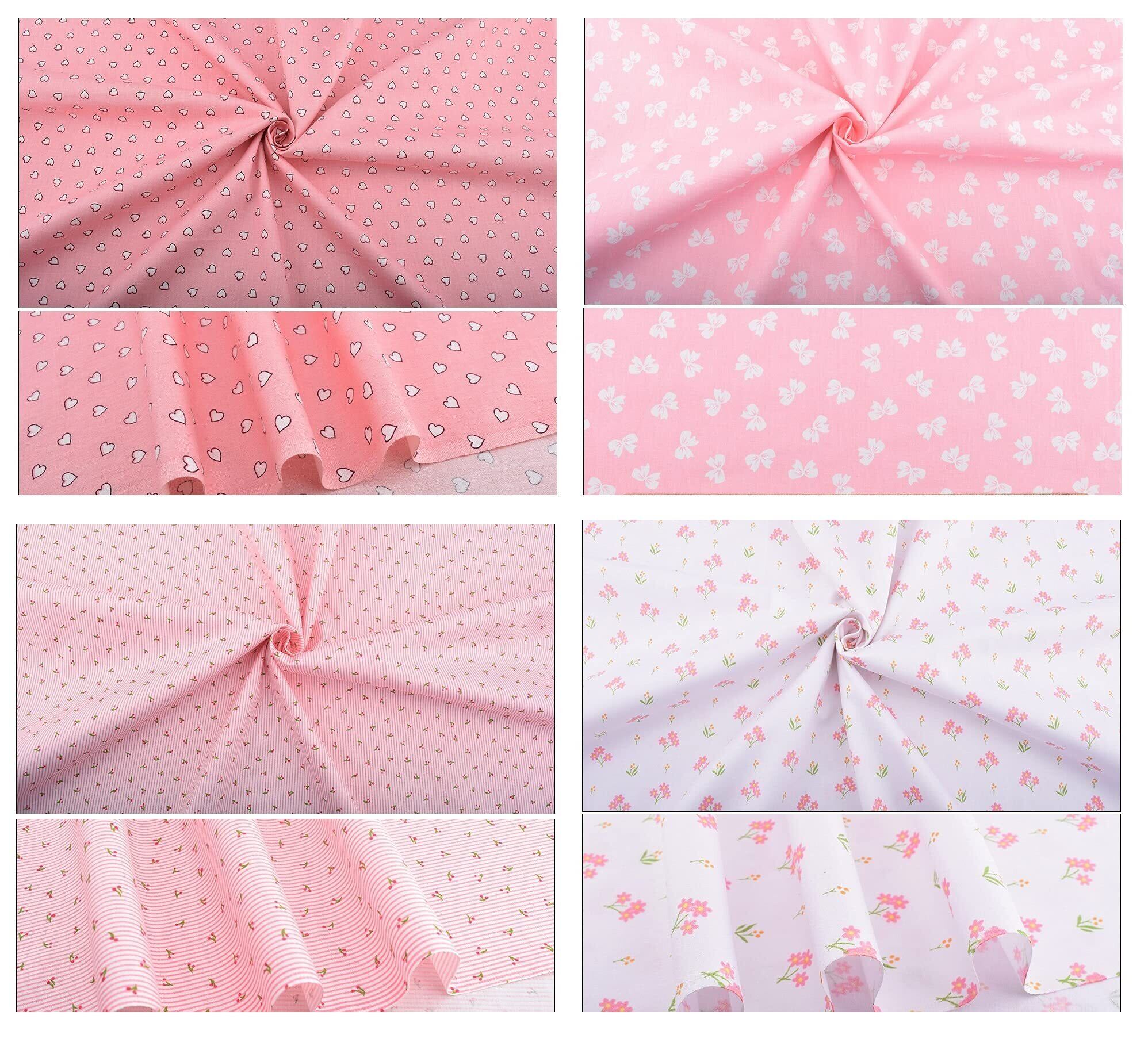 8枚セット 花柄 パッチワーク布 カットクロス 北欧 綿 はぎれ 布セット プリント生地 コットン生地 DIY手作り バレンタインデー 無地 手芸用 大人用 家庭用 給食袋 ポーチ 50*40cm (ピンク系 8枚セット)