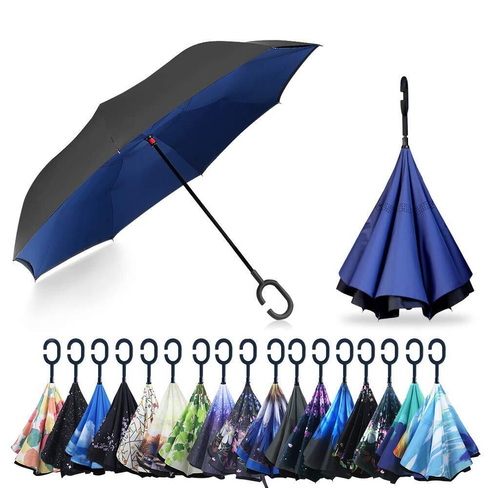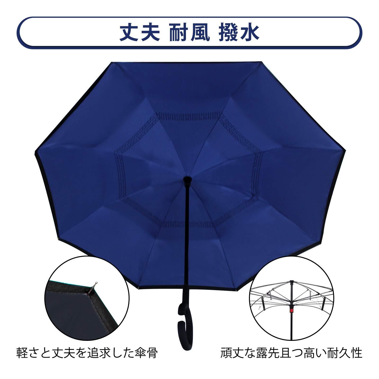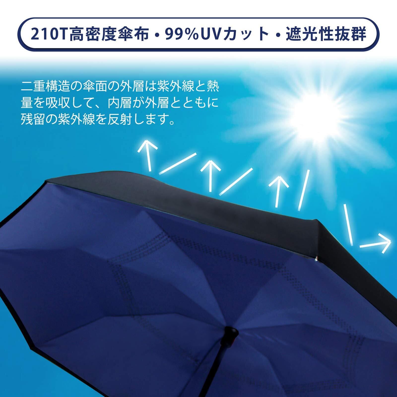 長傘 逆さ傘 逆折り式 耐風 丈夫 撥水 UVカット 晴雨兼用 完全遮光 遮熱 自立可能 車用 男女兼用 熱中症対策 台風対応 梅雨季節に大活躍 収納ポーチ付き