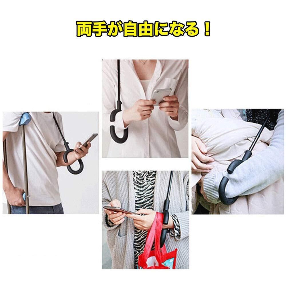 【両手解放のC型手元着地する時自立できる】持ちやすいC型手元で手首や腕にかけて両手が自由に使えます。携帯電話の操作や買い物や満員電車も困らない。柄も太くて長時間握っていても手が疲れない。