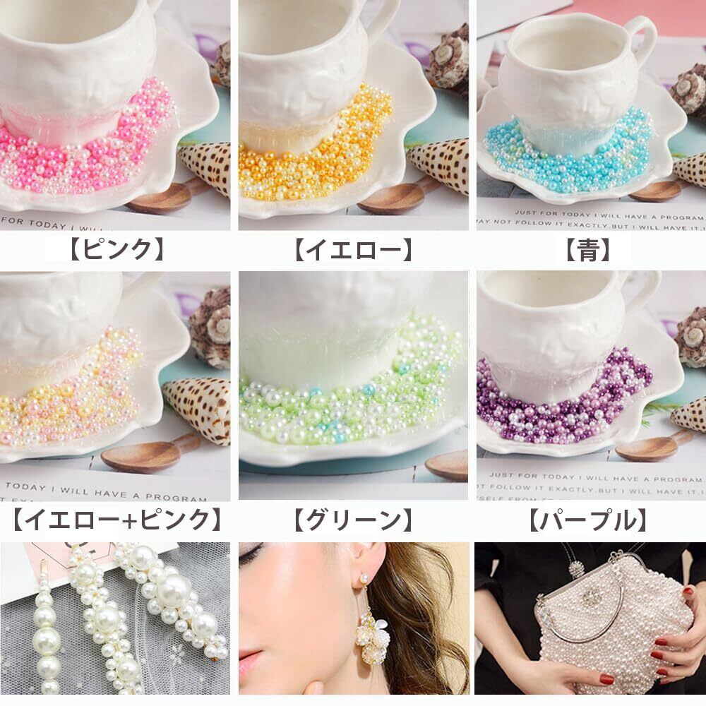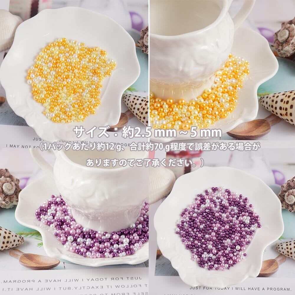 ✿セット内容:パール6色セット(穴無し )、カラーシリーズには、ピンク、ブルー、パープル、イエロー、イエロー+ファン、グリーンが含まれています。サイズ:2.5 mm ~ 5 mm(1パックあたり約12 g、合計約70 g程度、誤差がある場合がありますのでご了承ください)。