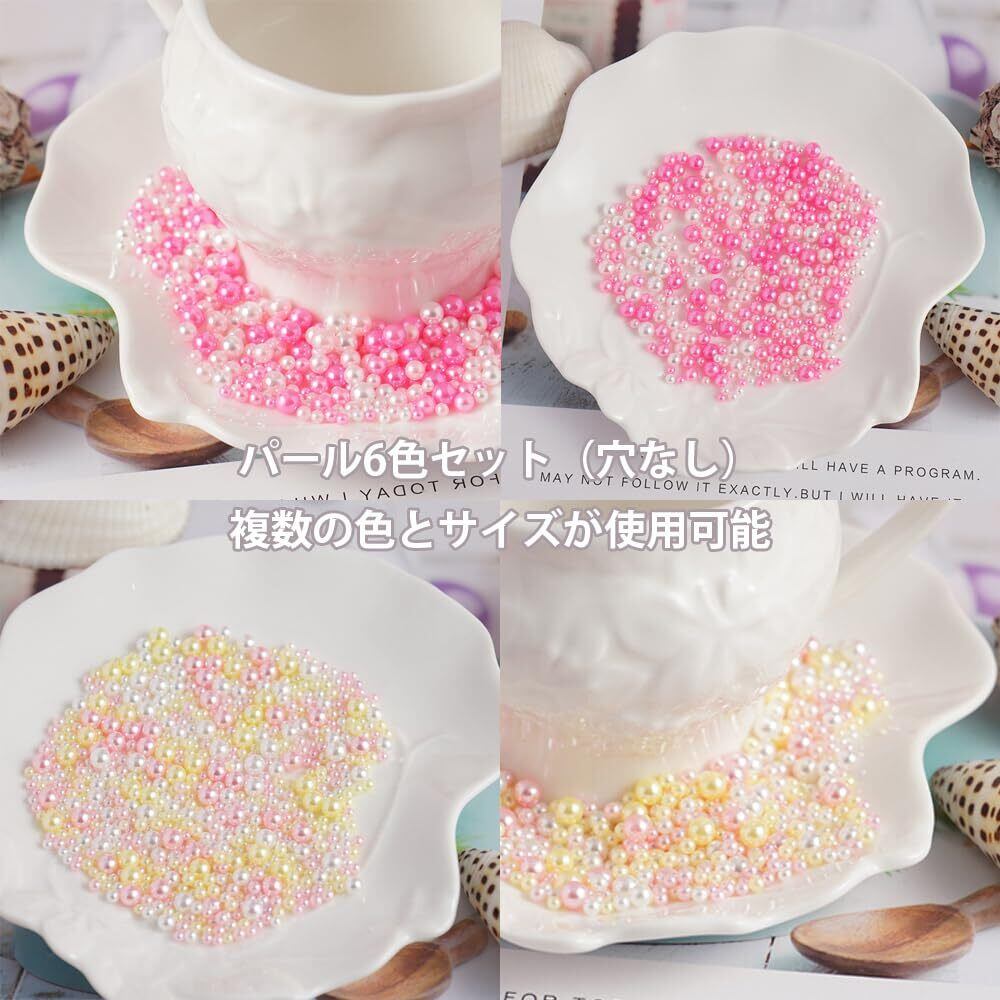 サムコス 樹脂パール パールビーズ 6色セット 穴無しパール こんごうすんぽう アクセサリーパーツ レジン封入 ネイルパーツ パーツ 材料 レインボーパール デコパーツ DIY 手芸用品 約70g