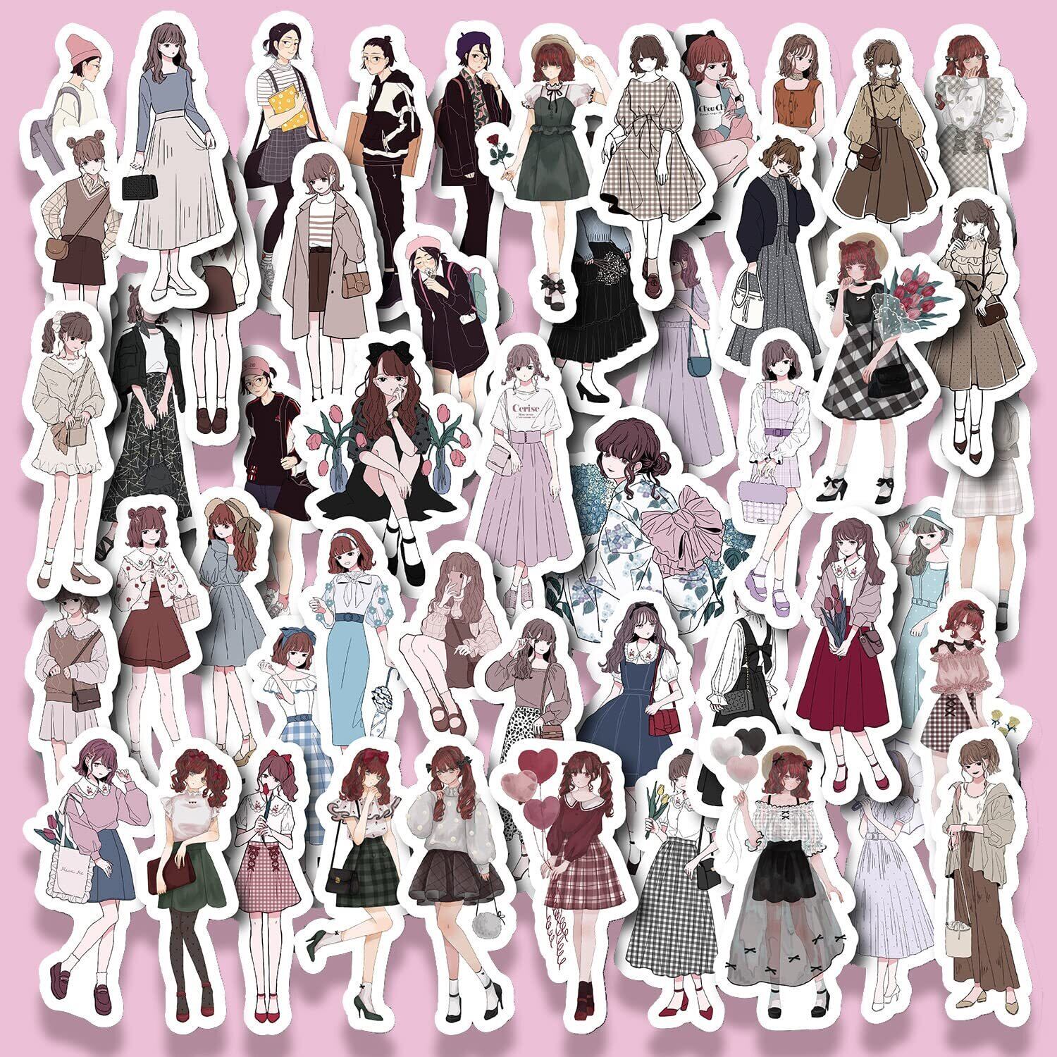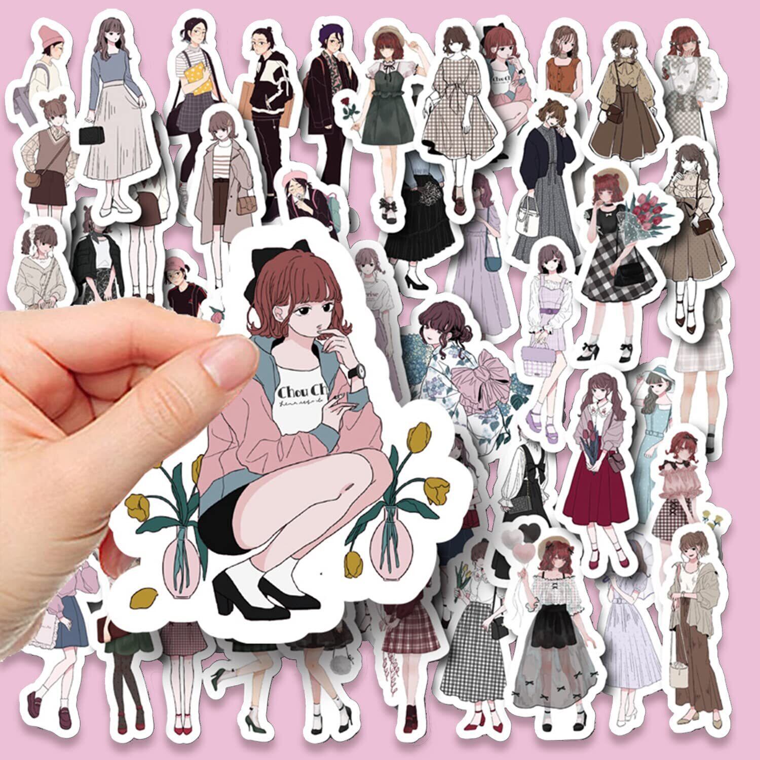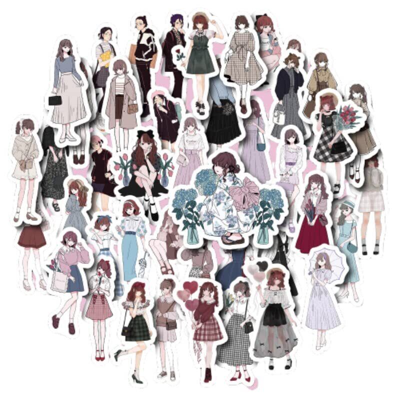 【女の子フレークシール - 大量なセット 】 約100枚入り(また約170枚入り)かわいい女の子のステッカーセット。様々なファッションでおしゃれなステッカーです。