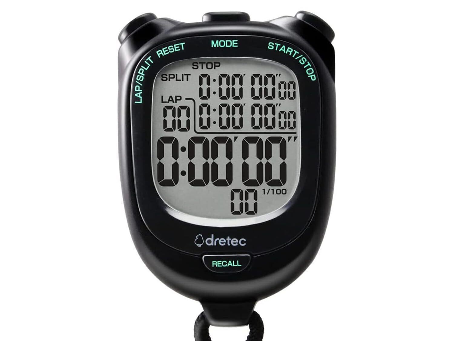 ドリテック(dretec) 大画面で見やすいストップウォッチ 0.01秒単位で計測 ラップ/スプリット機能 電池交換可 消音 勉強 ブラック約W58×D21×H81mm