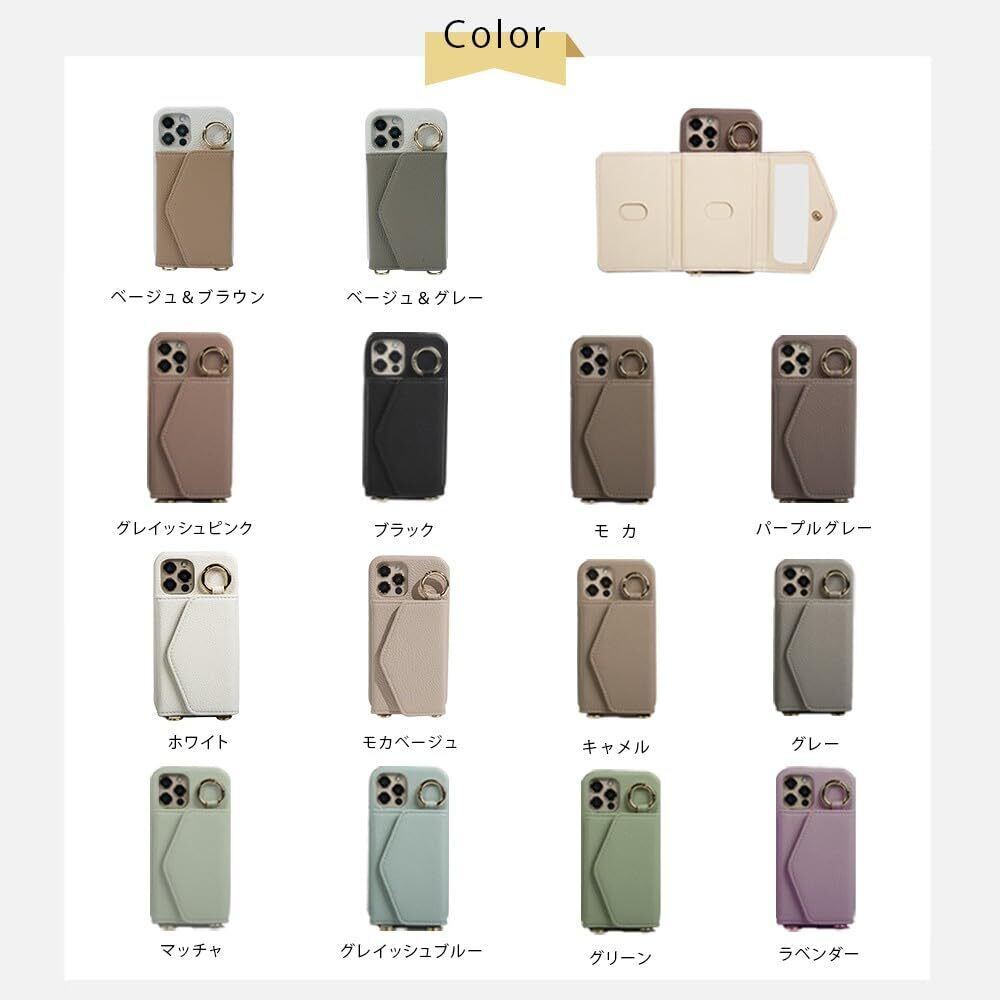 iphone12/iphone12 pro スマホケース ショルダー タイプ 携帯ケース 手帳型 背面カード収納 鏡付き 肩掛け 斜めかけ リング付き ミラー付き 背面ポケット 財布付き マグネットなし レザー ストラップ付き