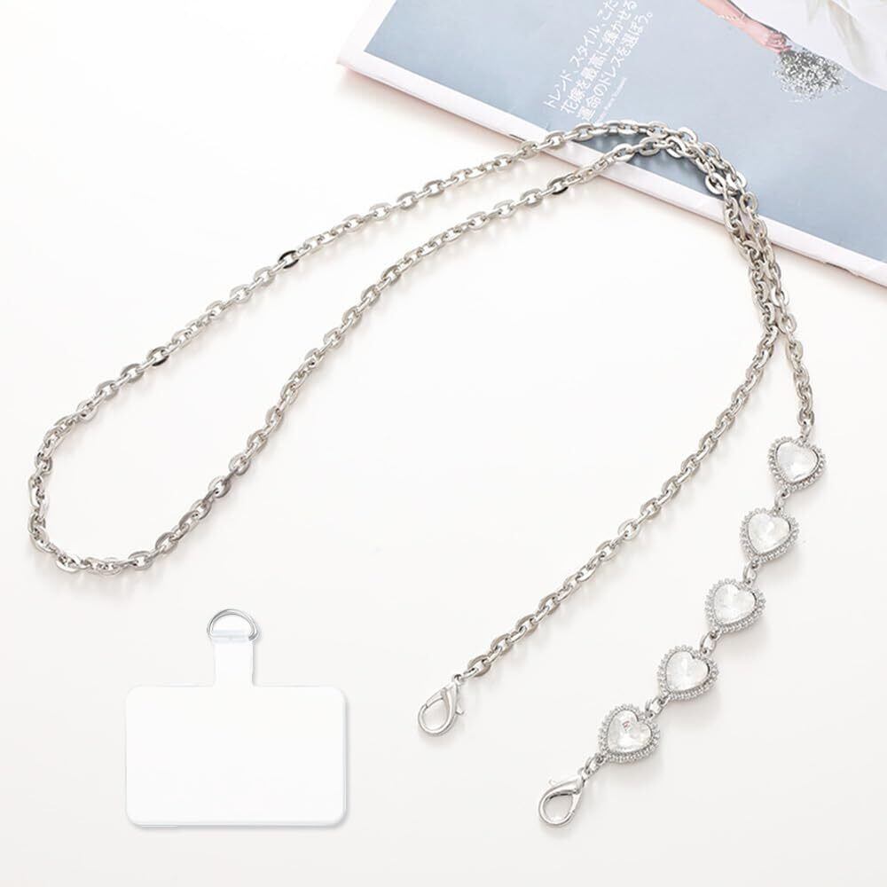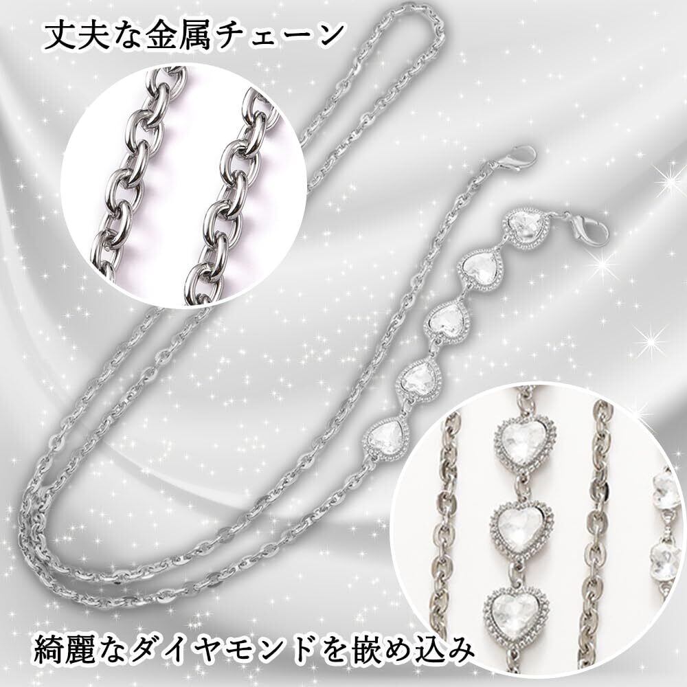 【贅沢・高級感ダイヤモンド設計】:本スマホストラップは輝きを放つ「ハート」の形のラインストーンを嵌め込み、メッキ仕上げの金属製チェーンと組み合わせて、キラキラ輝いて一層見栄えがして上品に演出してくれます。「ハート」の形状の設計、可愛くてエレガントな印象で従来のスマホチェーンよりも高級感を感じることができます。特に、綺麗なスカート、コート、ブラウス、ドレスなどの衣装にとても合わせます。
