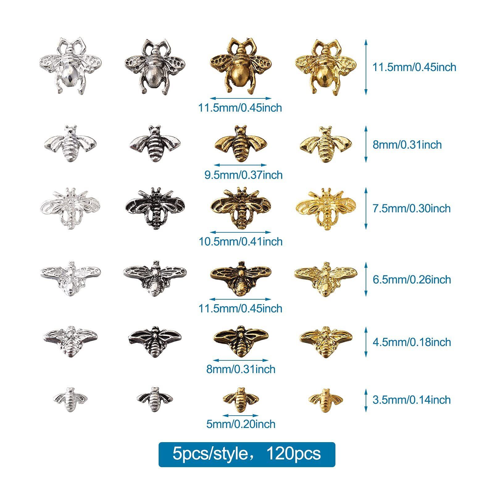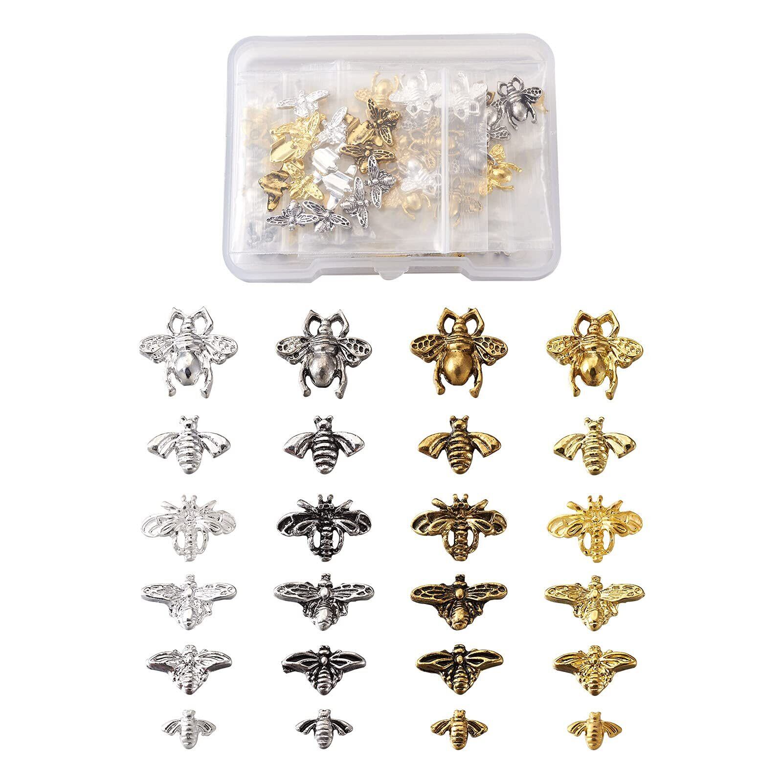 Beadthoven レジンパーツ 封入材 メタルパーツ ミツバチ 約120個/箱 4色 蜂 合金カボション レジンクラフト デコパーツ ネイルパーツ チャームパーツ アクセサリー材料 DIY用品 手作り ネックレス ブレスレット ジュエリー作成 ハンドメイド用 手芸素材