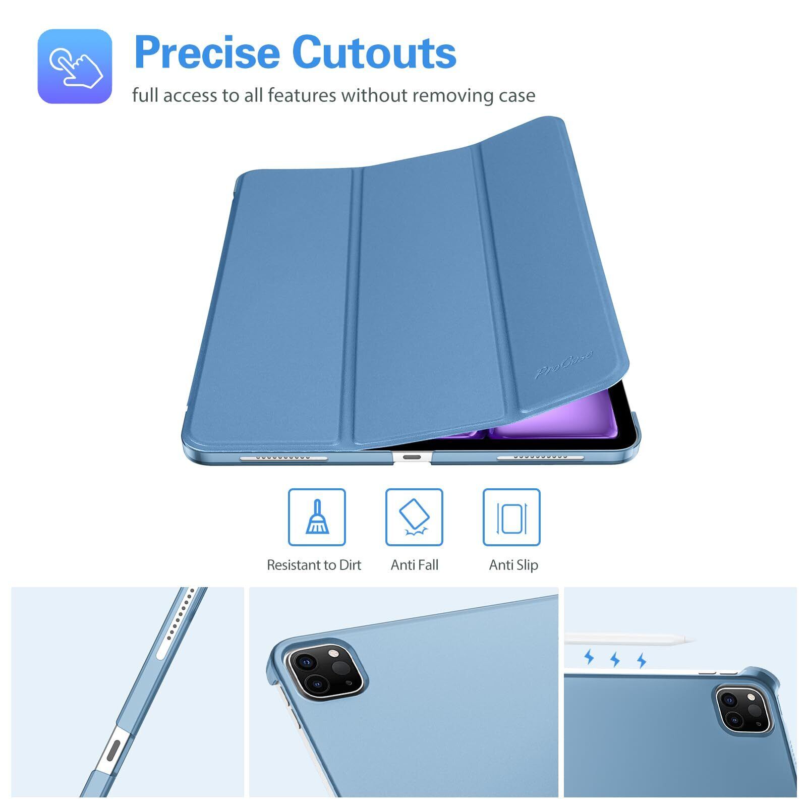 ProCase iPad Pro 12.9 ケース 第6/5/4/3世代に適用(2022 2021 2020 2018) スリム 三つ折り スタンド スマートカバー Pencilのペアリングと充電に対応 - ブルー