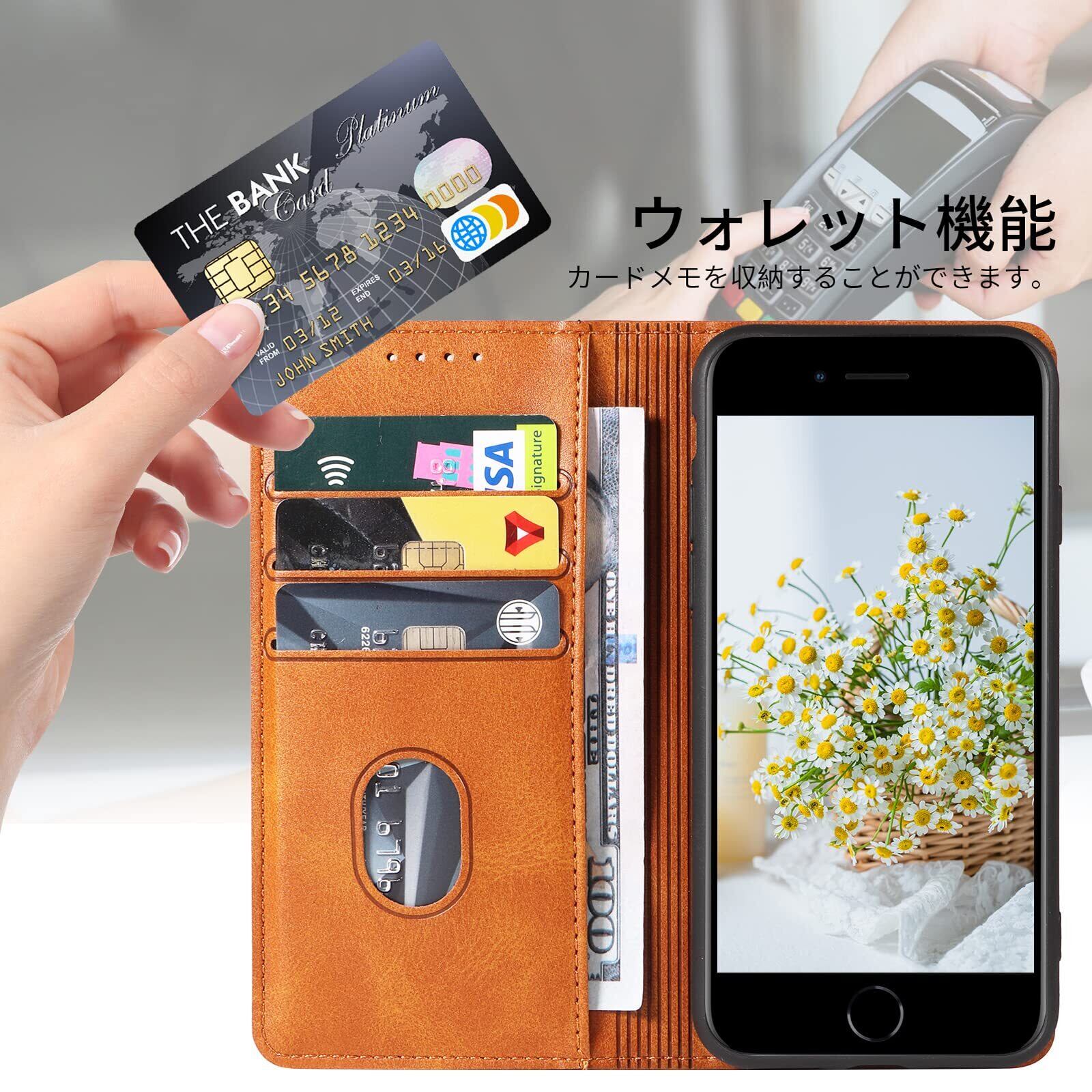 iPhone SE ケース 第2世代 第3世代 iphone8/7 ケース 手帳型 スマホケース 携帯カバー PUレザー カード収納ケース マグネット式 スタンド機能アイフォンse 4.7インチ対応 360度保護 PinLiSheng (カーキ色, iPhone SE2 iPhone SE3 iPhone8 iPhone7)
