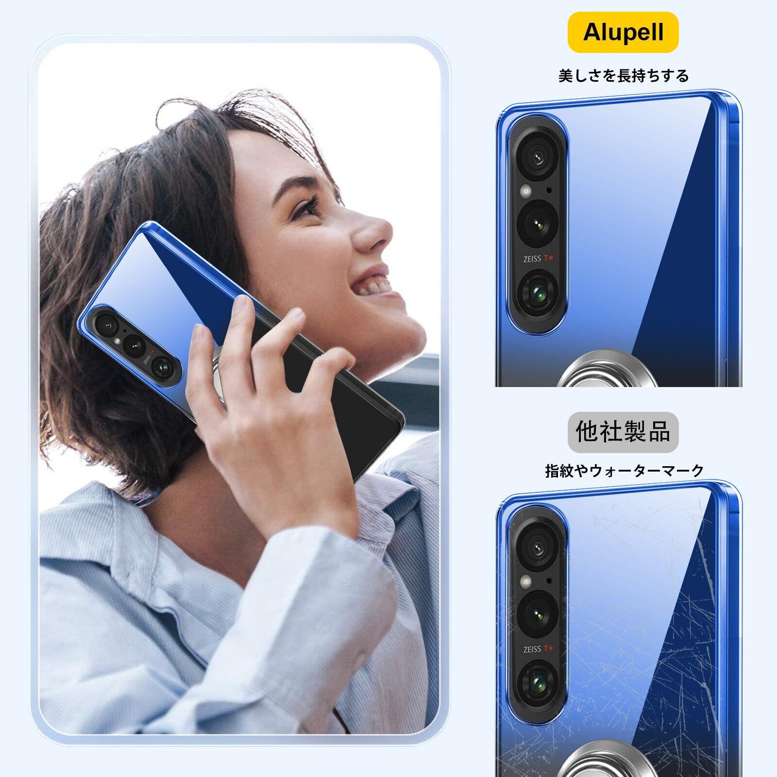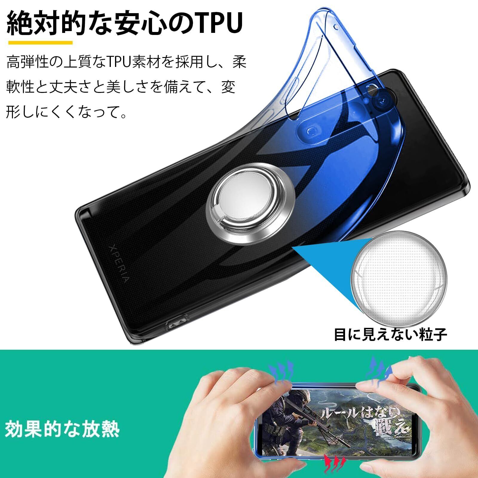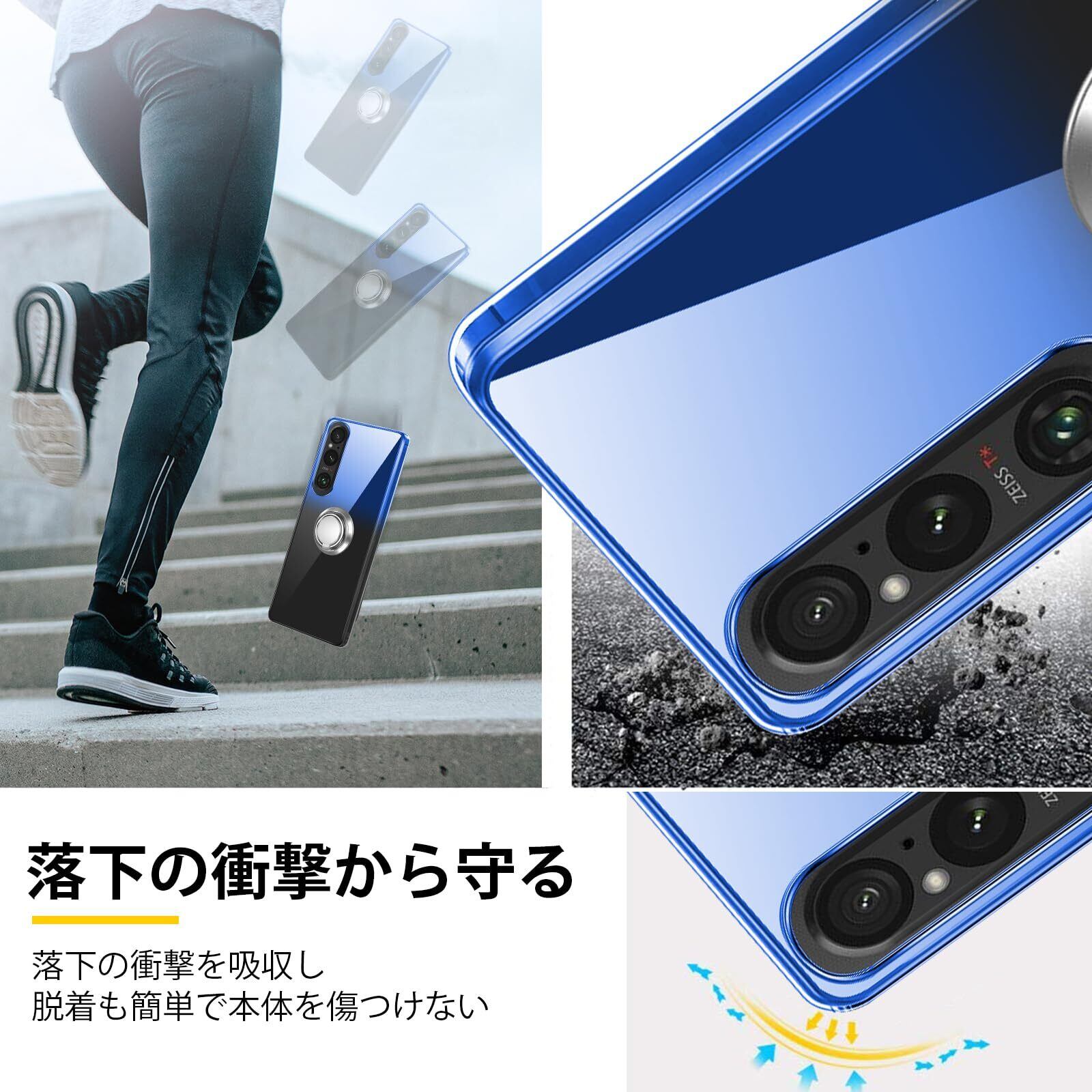 Xperia 1V ケースリング付き クリア TPU 薄型 軽量 Xperia1 V SO-51D スマホケース シリコン グラデーション色 ケース 耐衝撃 指紋防止 車載ホルダー対応 防塵 一体型 人気 携帯カバー ストラップホール付き (ブルーブラック)