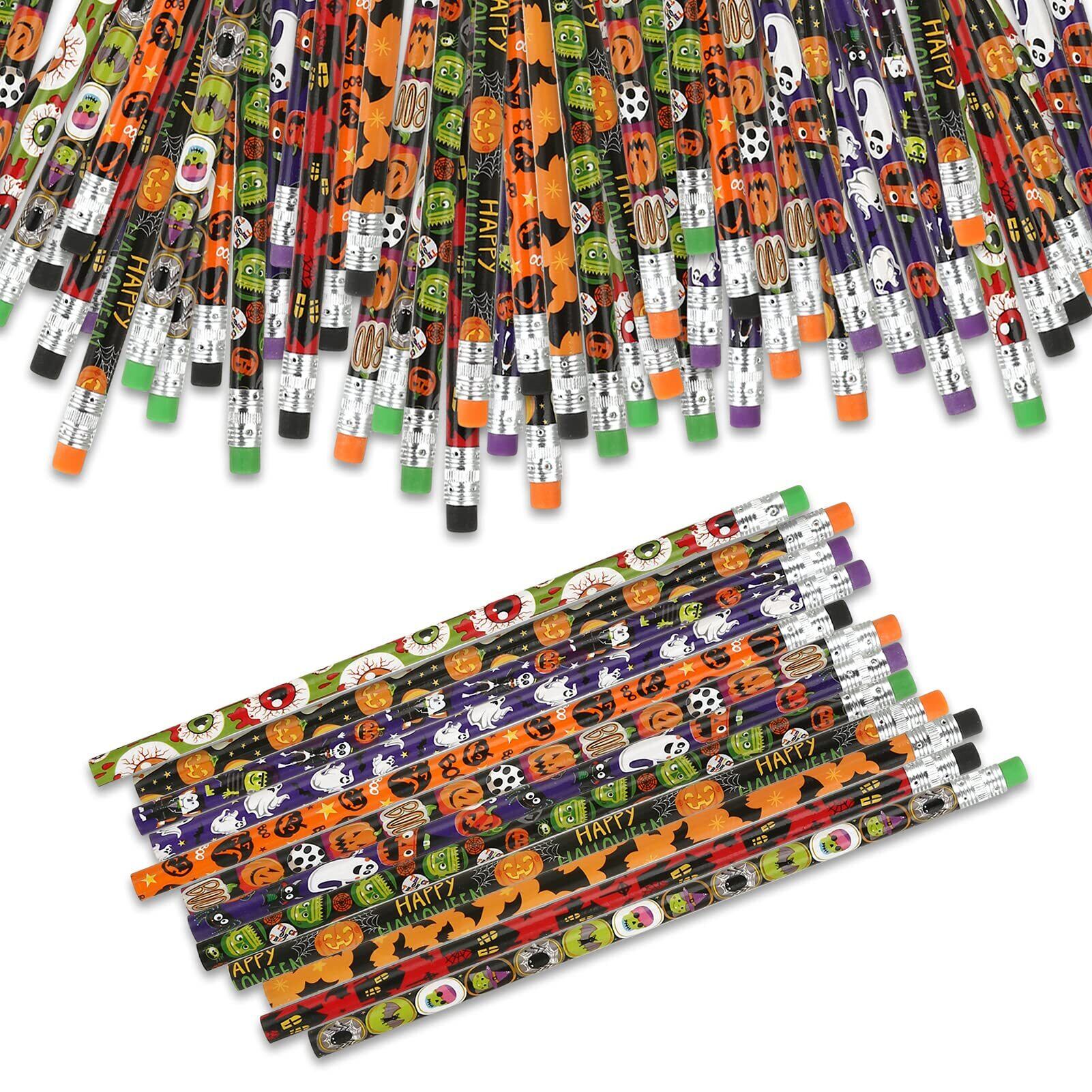 【可愛い鉛筆】カボチャ、お化け、コウモリなどハロウィンらしいモチーフが描かれた鉛筆いっぱい詰め合わせた!ハロウィン景品としてはピッタリです。