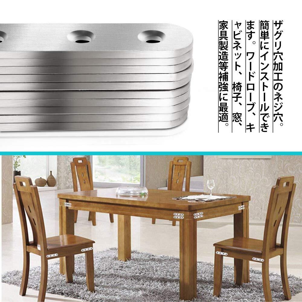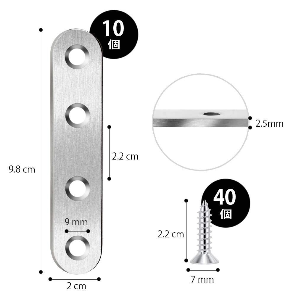 ジョイント金具 フラット ステンレス アングル 接合金具 100×20×3mm フラットプレート ブラケット金具 連結金具 10個 ステンレスネジ 40個 フラット修理プレート 固定板 プレート 棚受け金具