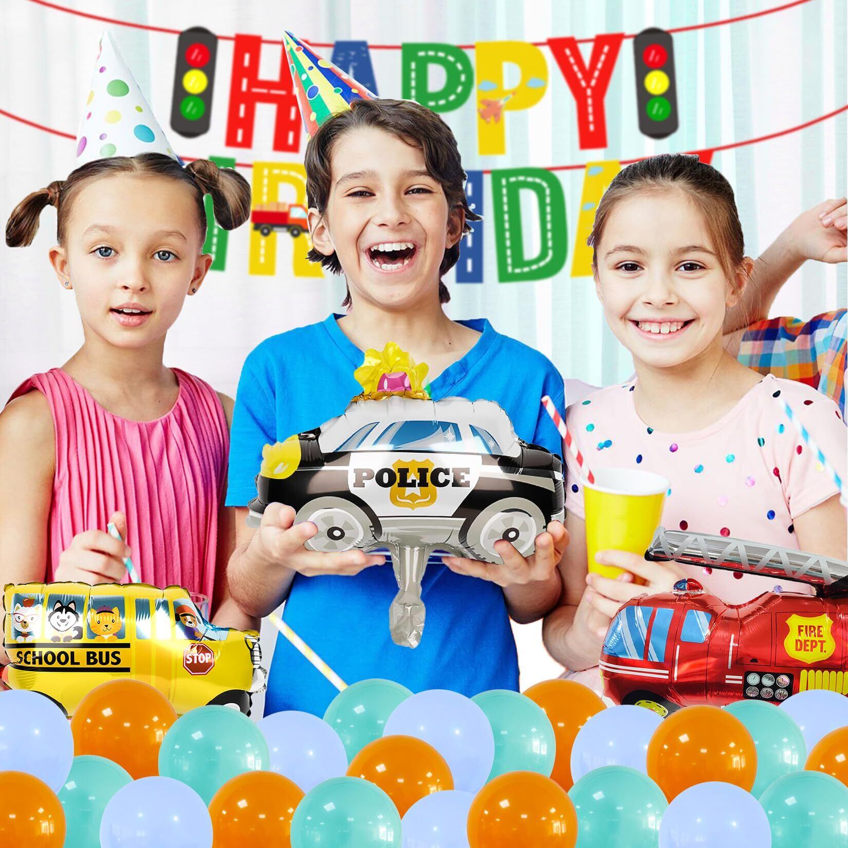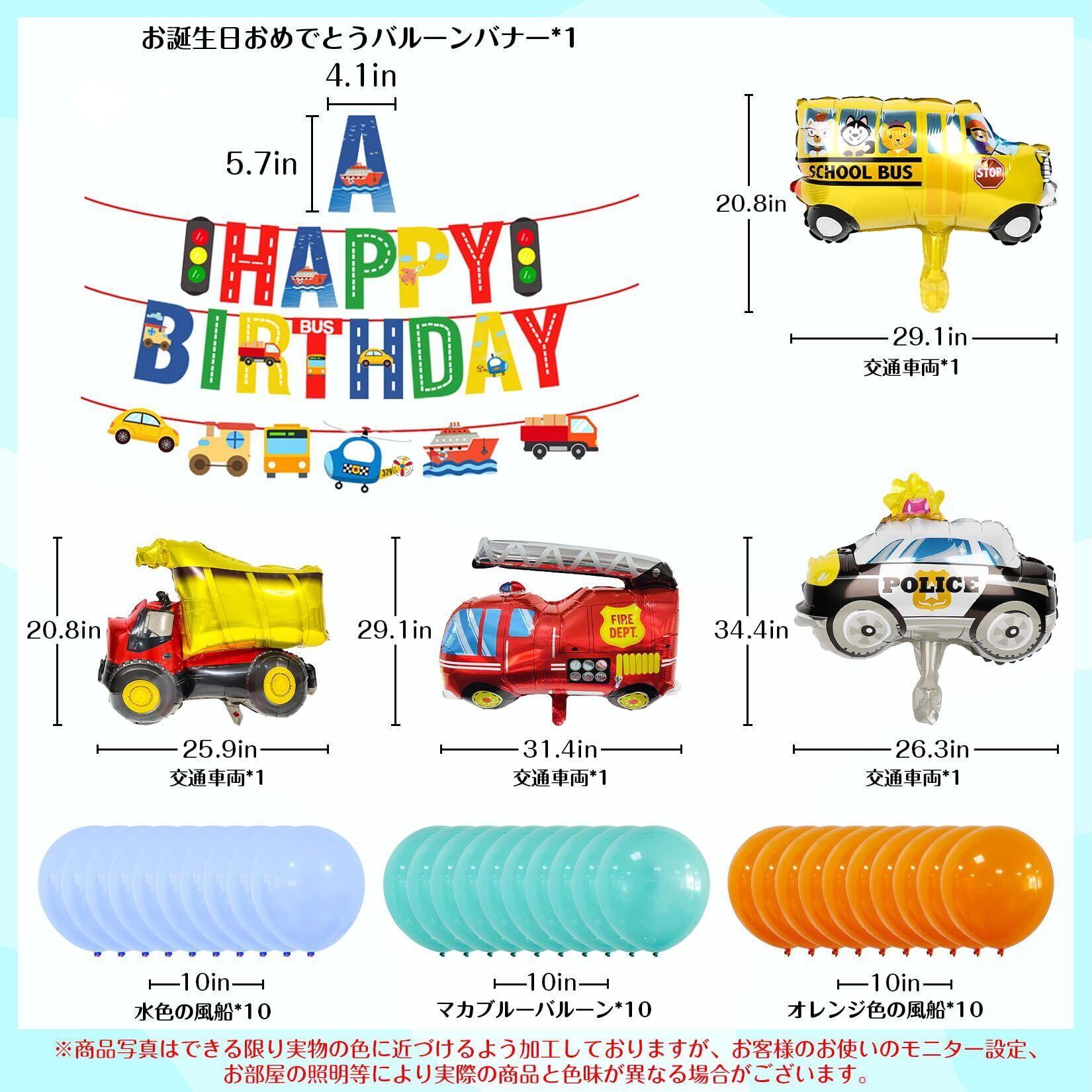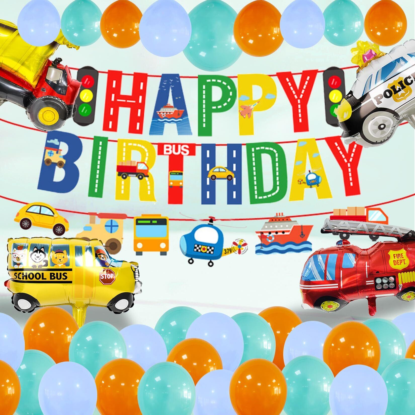 誕生日 車 飾り付け シンプル パーティー セット ハッピー バースデー HAPPY BIRTHDAY パーティーデコレーション 交通バナー 救急車 消防車 スクールバス アルミ風船 かわいい 女の子 男の子 バースデー パーティー 飾り(car)