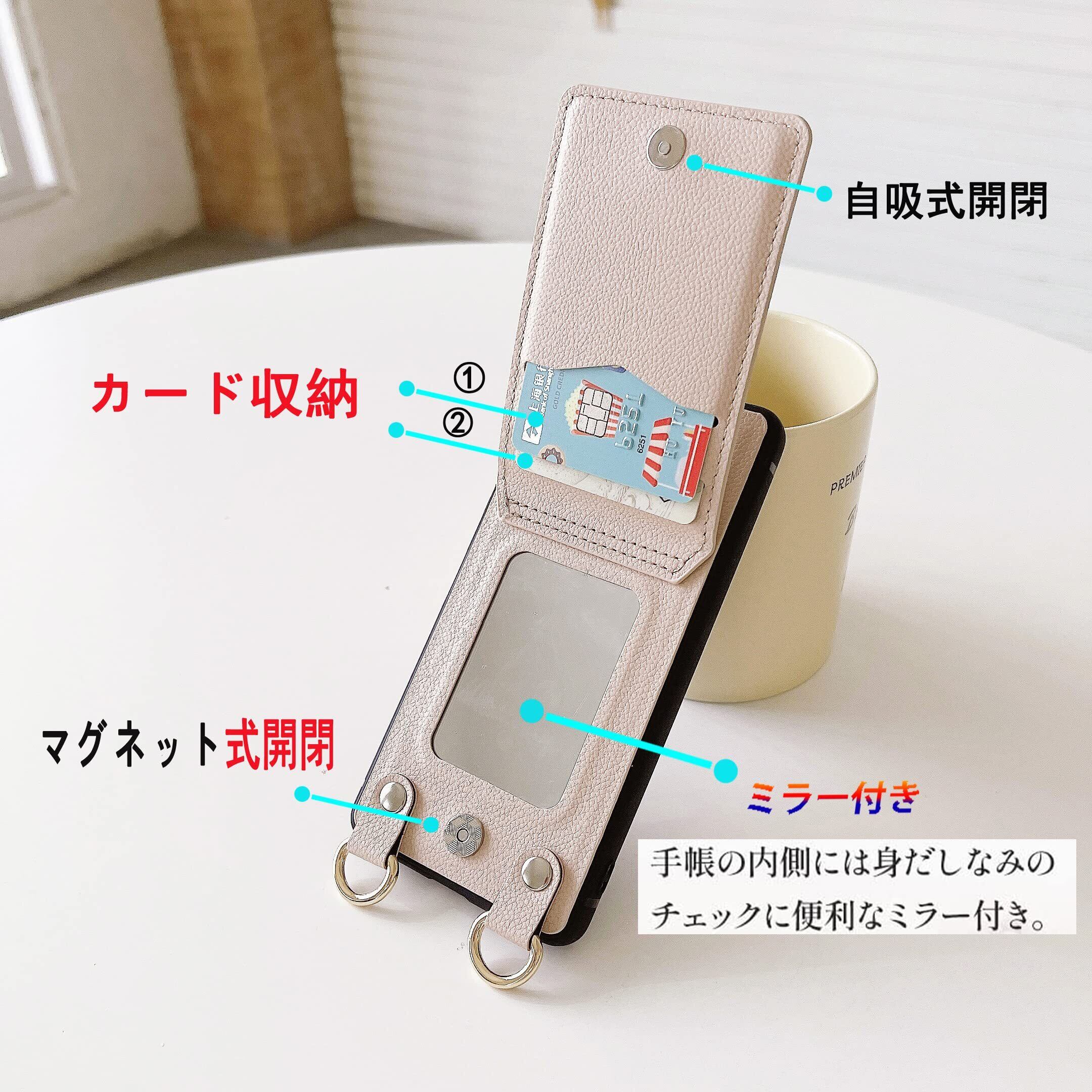 Libero 5G II ケース 高質レザー ZTE Libero 5G II カバー 肩掛け 首かけ 斜めがけ A103ZT ケース ショルダー リベロ5g2 ケース ミラーケース 便利 カードポケット スタンド機能 落ち着いた色 調節可能 軽量 多機能 縦置き ICカード収納 財布型 耐衝撃 携帯 鏡付き ZTE Libero 5G II A103ZT ケース むぎいろ
