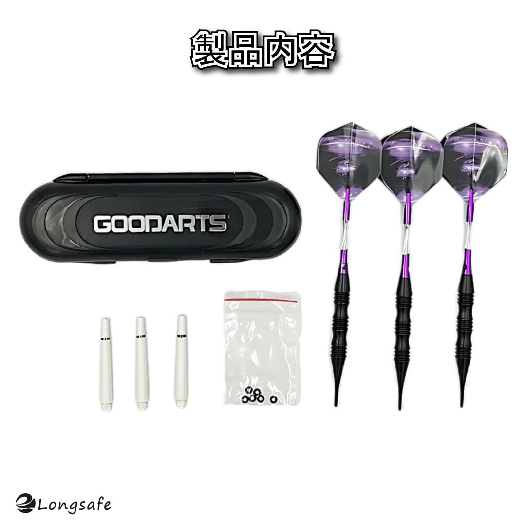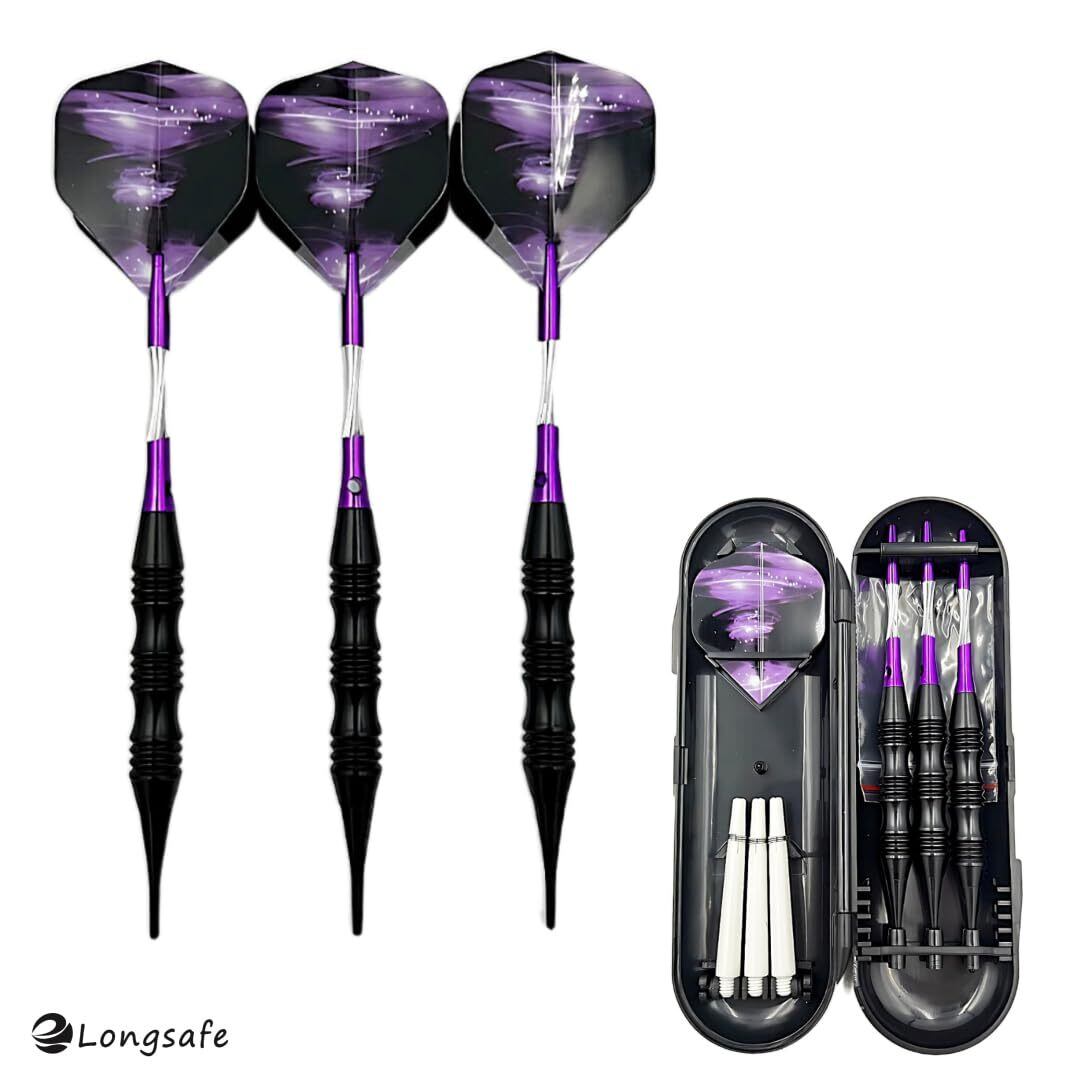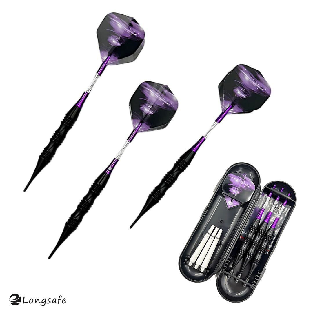 マイダーツ セット 矢 アルミ シャフト初心者 中級者 入門用 ダーツ 紫 バレル フライト チップ 2BA ソフトダーツ ケース 付き(20g パープル)(DAR2001-PL)