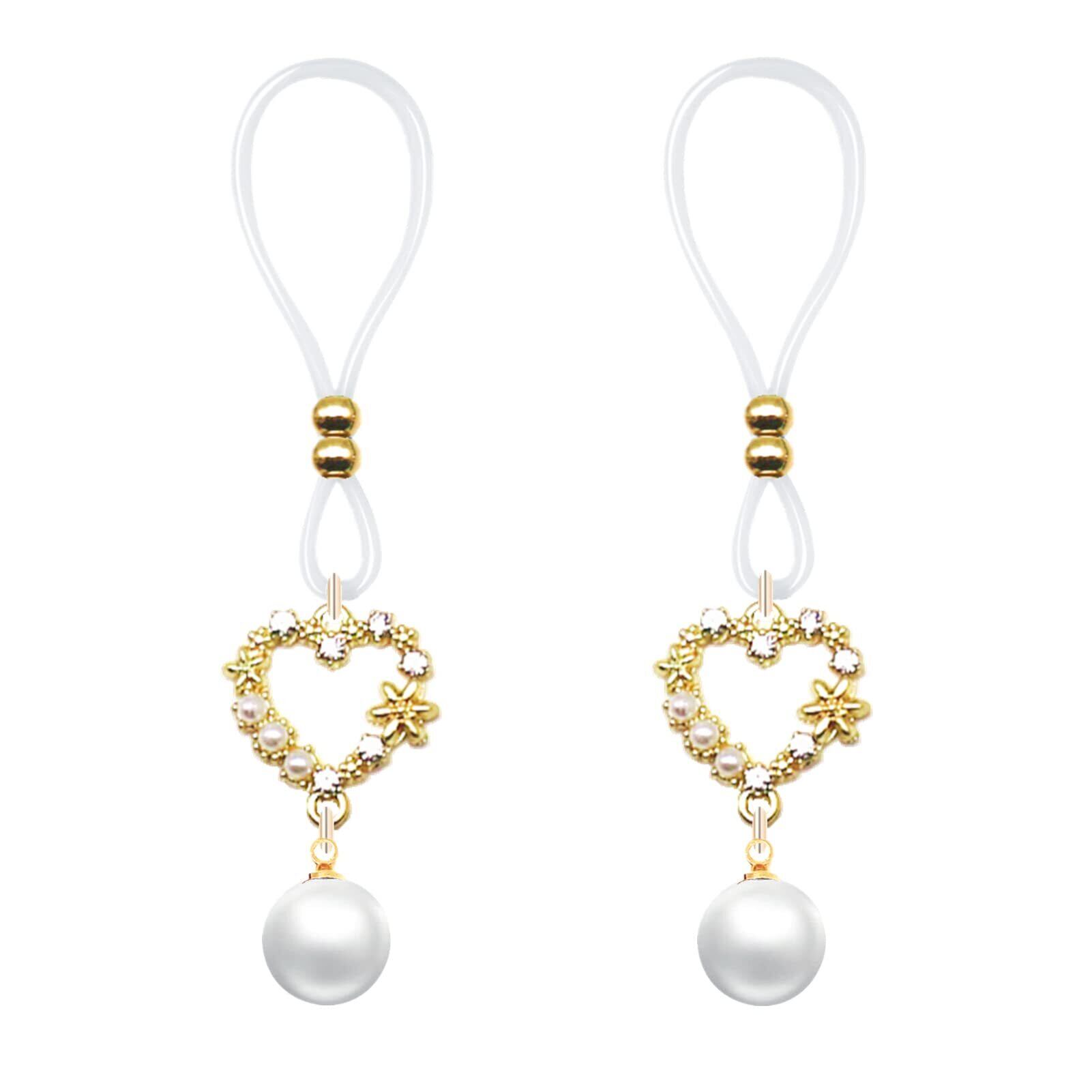 フェイクニップルピアスジュエリーノンピアスニップルリングハート・シェル・パールぶらさがりニップルクランプアジャスタブルボディチェーン