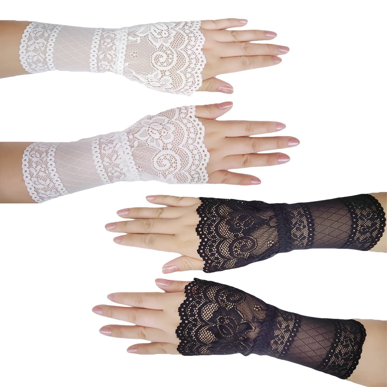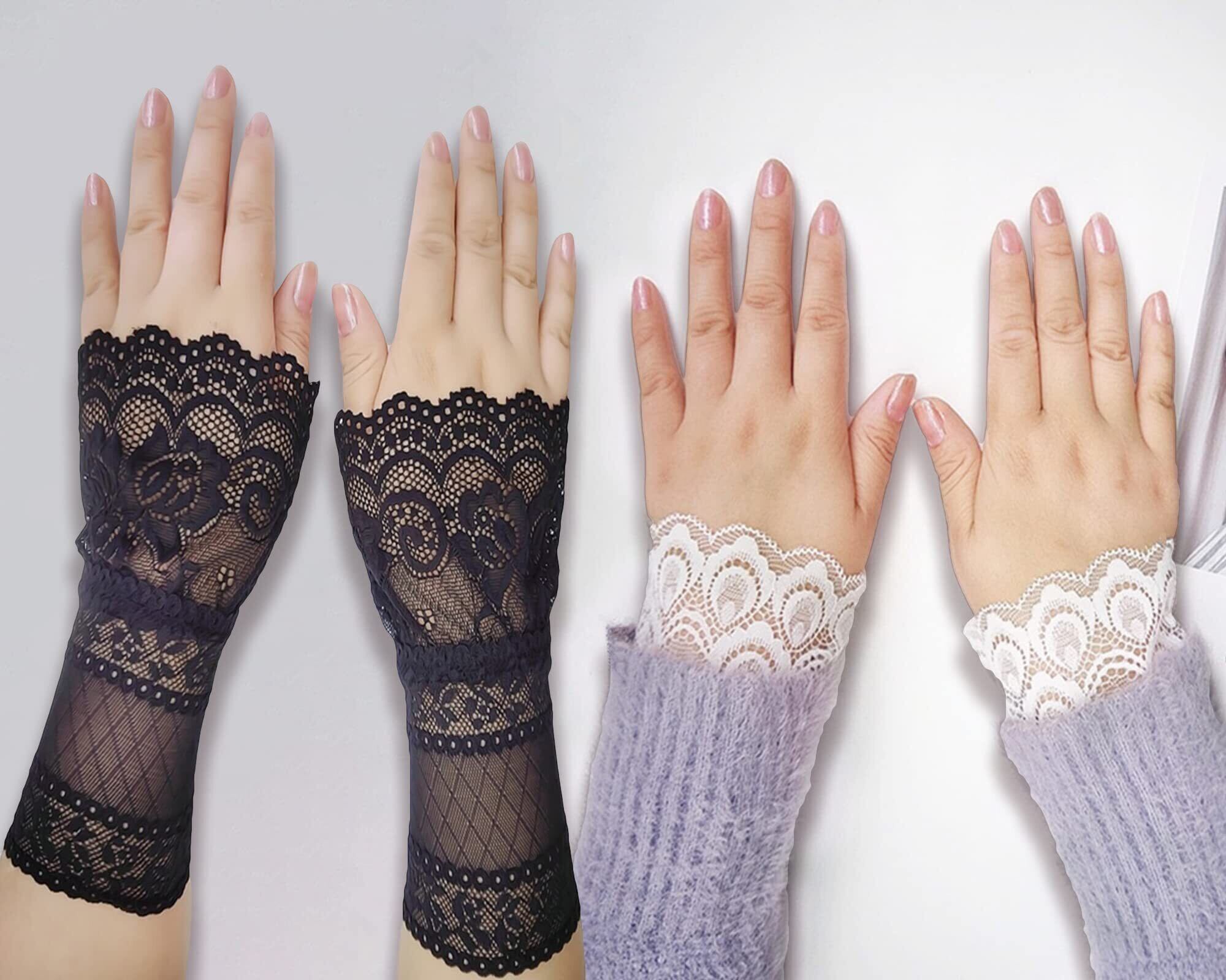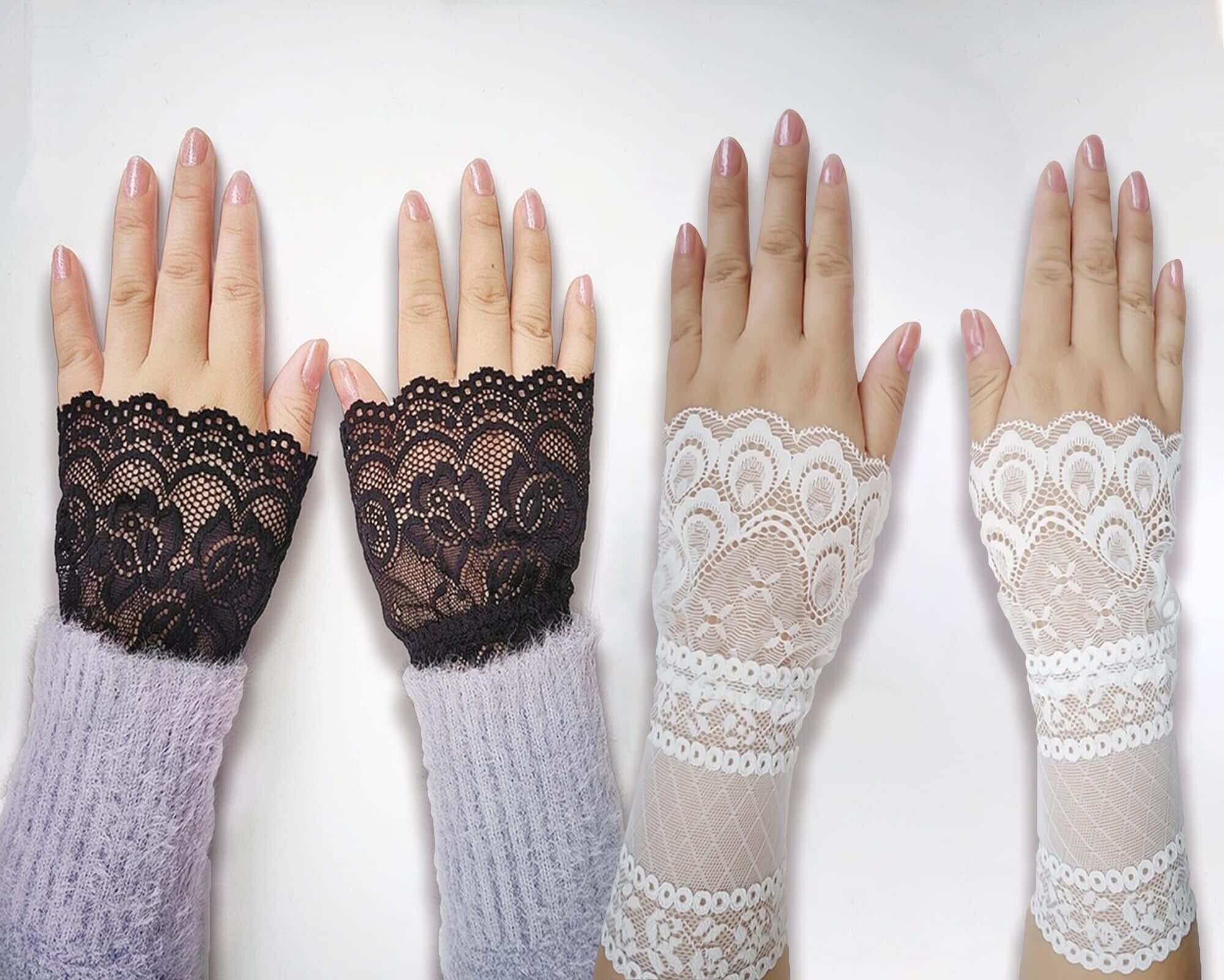 [fourfivesixはる] つけ袖 レース ロリータ チャーム ガールズ 腕飾り 黒白2組4個セット 超キュート お袖留め 偽カフス 腕飾り フレア袖口 レディース きれい 替え袖 レイヤード 可愛い おしゃれ