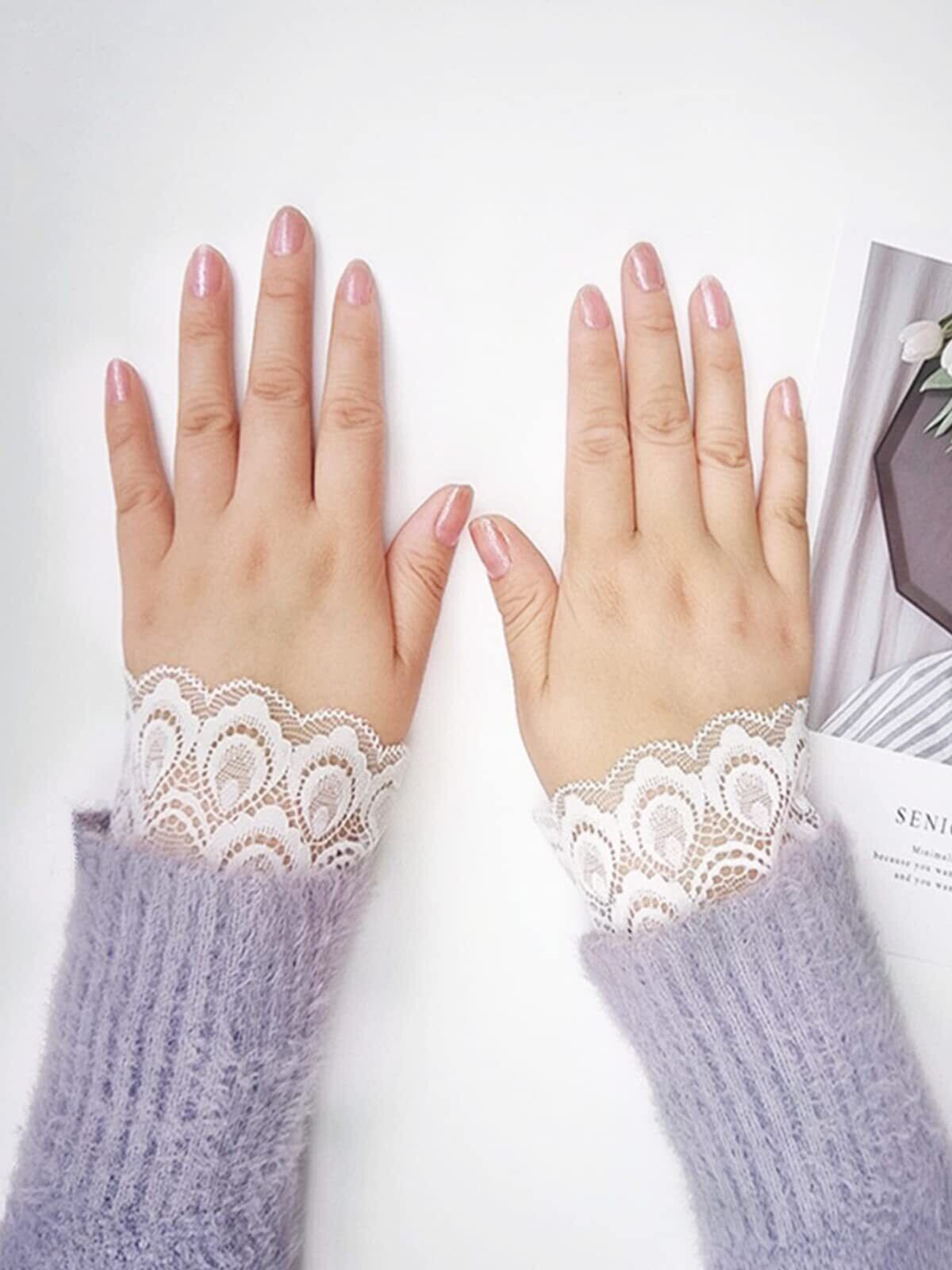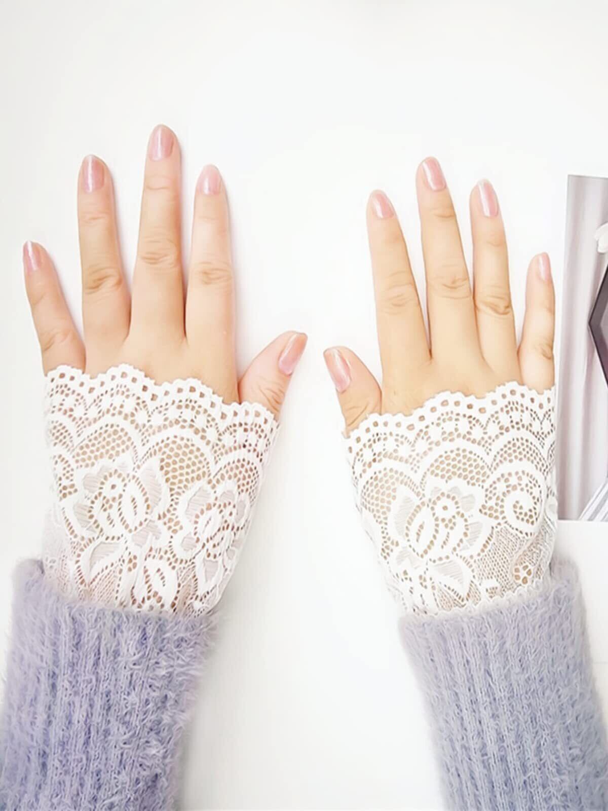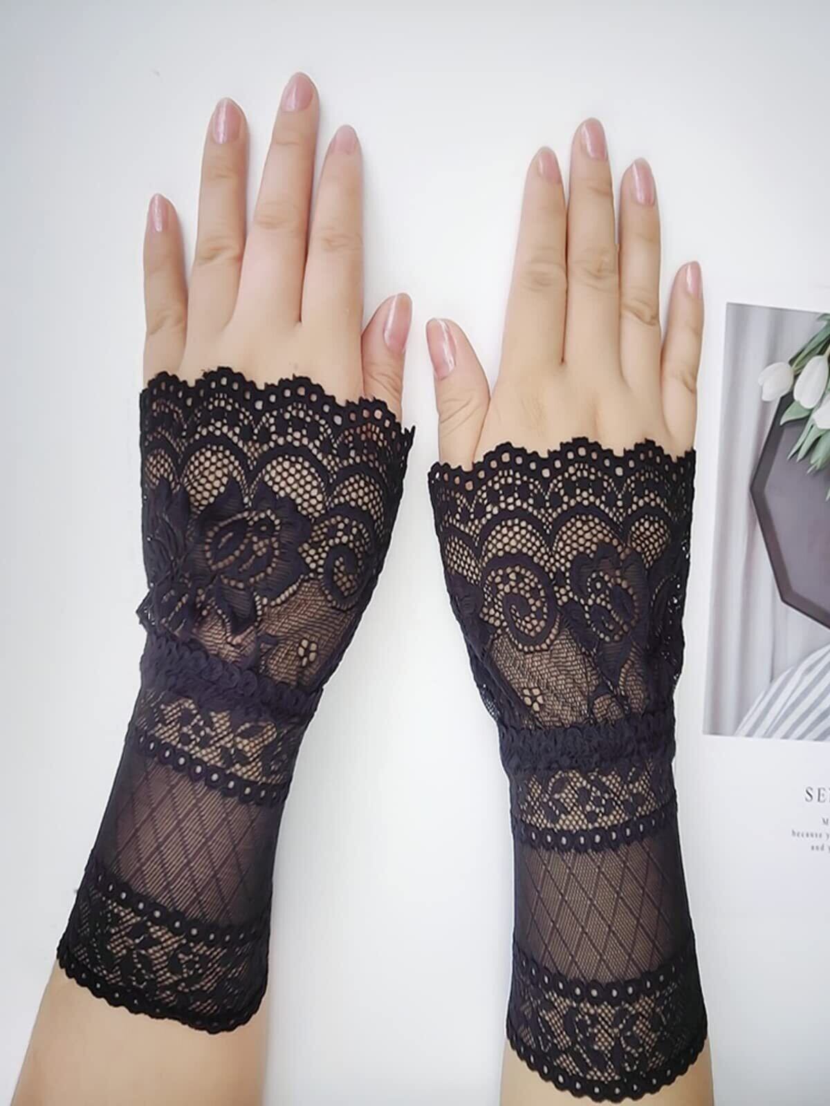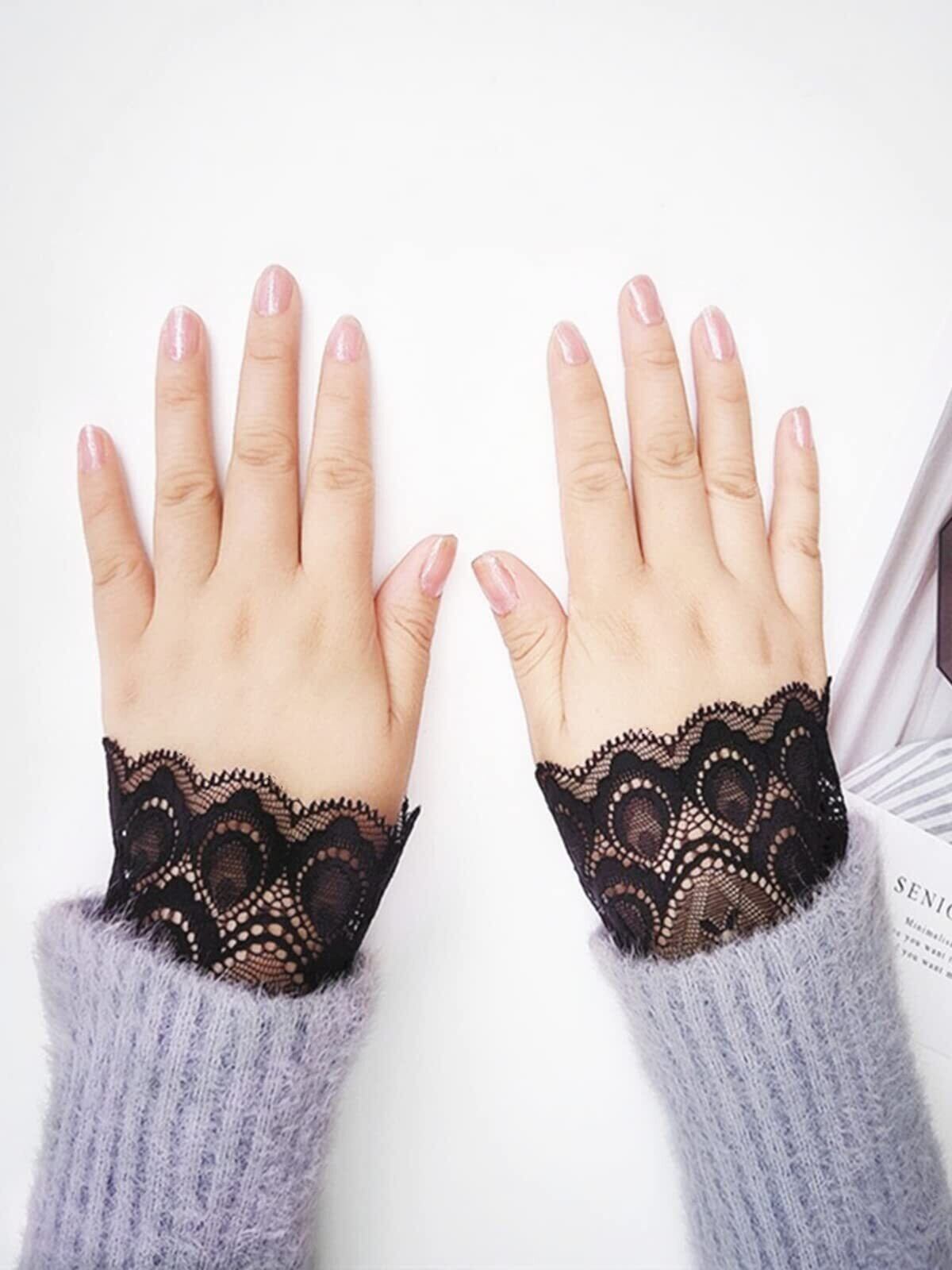[fourfivesixはる] つけ袖 レース ロリータ チャーム ガールズ 腕飾り 黒白2組4個セット 超キュート お袖留め 偽カフス 腕飾り フレア袖口 レディース きれい 替え袖 レイヤード 可愛い おしゃれ