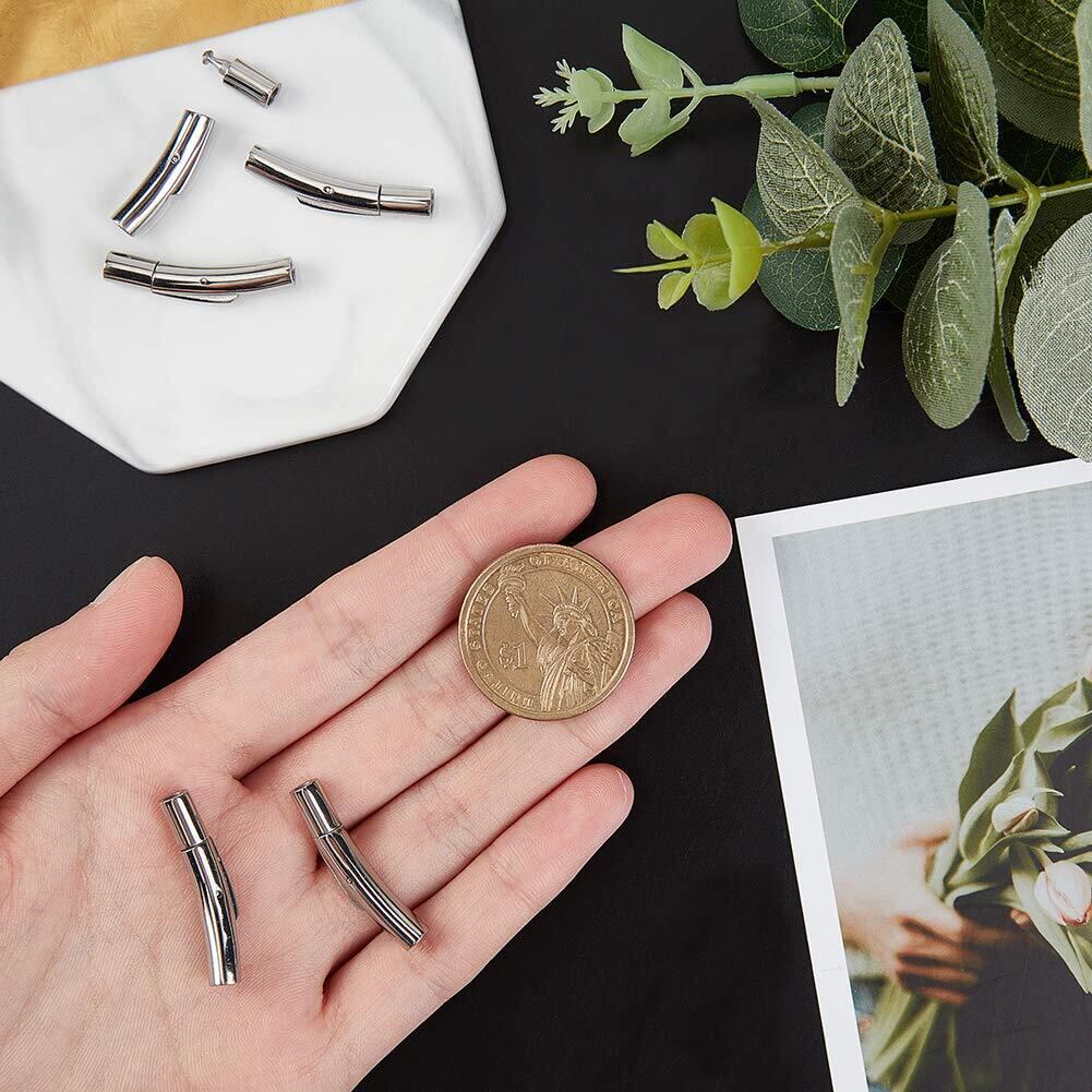 5セット 穴径4mm 304ステンレス製バヨネット式クラスプ プレス式 チューブ コラム 管状クラスプ ヒモ留め 紐留め 留め金 エンドパーツ ステンレス鋼色 接続金具 金属パーツ ブレスレット留め具 ジュエリー アクセサリーパーツ 副資材 ハンドメイド 手芸用品