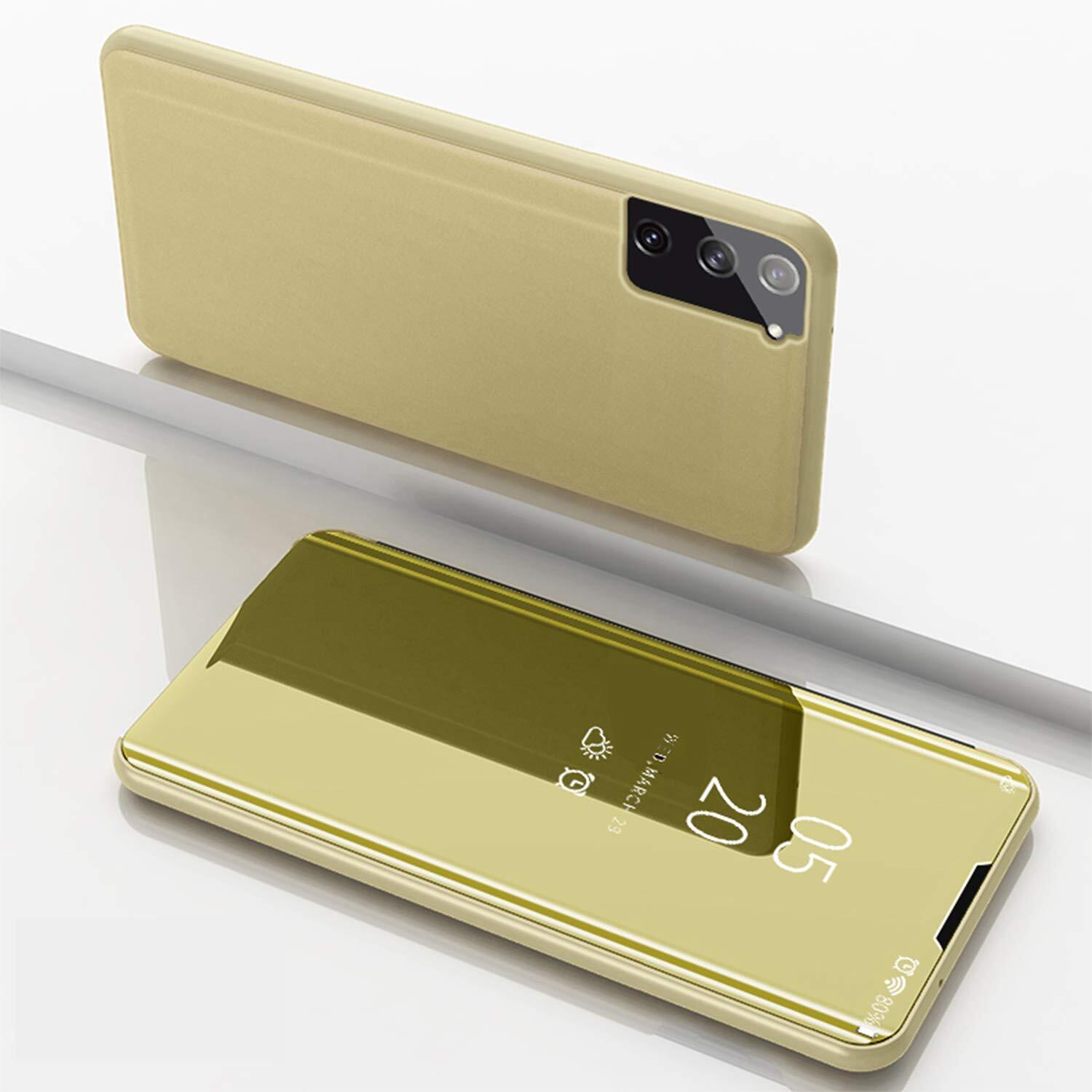 携帯電話ケース Galaxy S21 薄型 ミラー メッキ 手帳型 PUレザー スタンド機能 カバー 可愛い 面白い 透明 窓 キラキラ おしゃれ キャラクター レンズ保護 全面保護 指紋防止 ワイヤレス充電 落下防止 マグネット 財布型 スマホ 磁気防止 かわいい 人気 耐衝撃 beautycatcher - 金