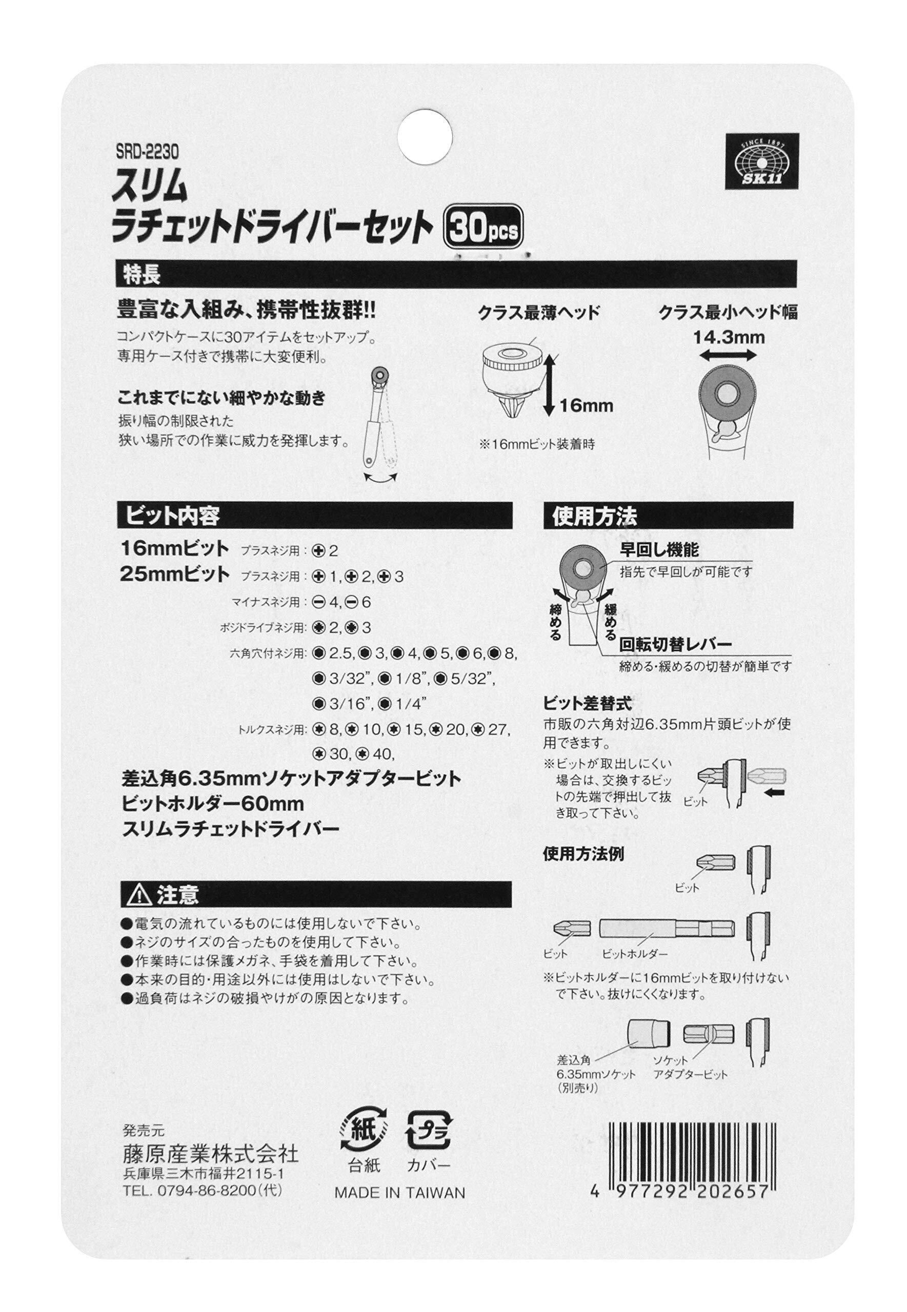 SK11(エスケー11) スリムラチェットドライバーセット SRD-2230 ギア数52山 差替式 30点セット