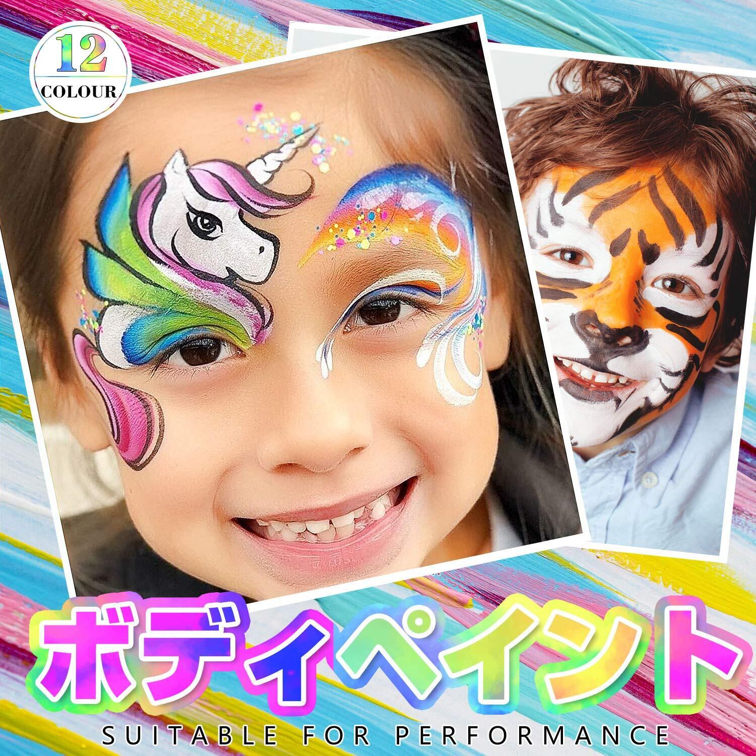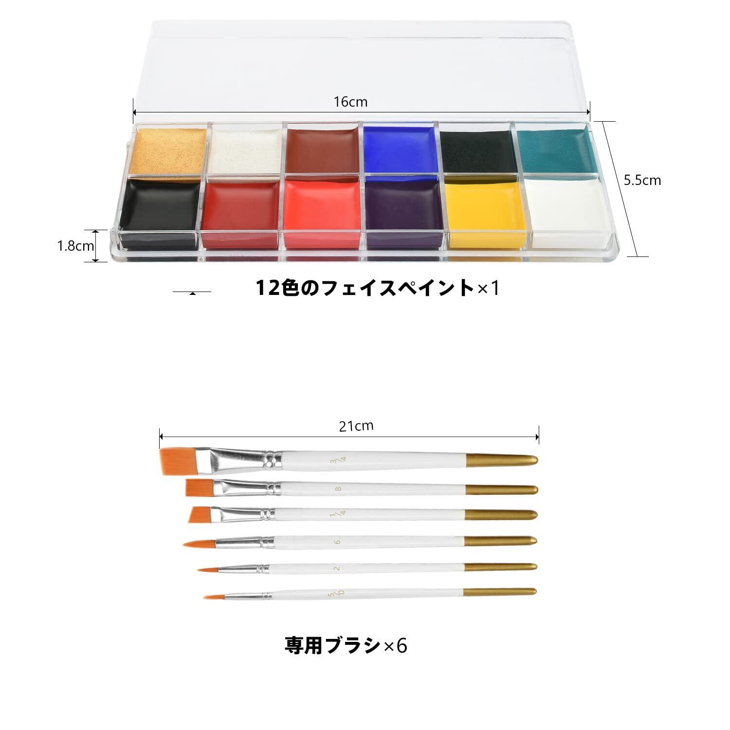 フェイスペイント 12色セット ボディペイント 絵の具 マタニティペイント 顔ペイント 白塗り 安全 無毒 エコ メイク ブラシ6本 コスプレ 仮装 ハロウィン クリスマス