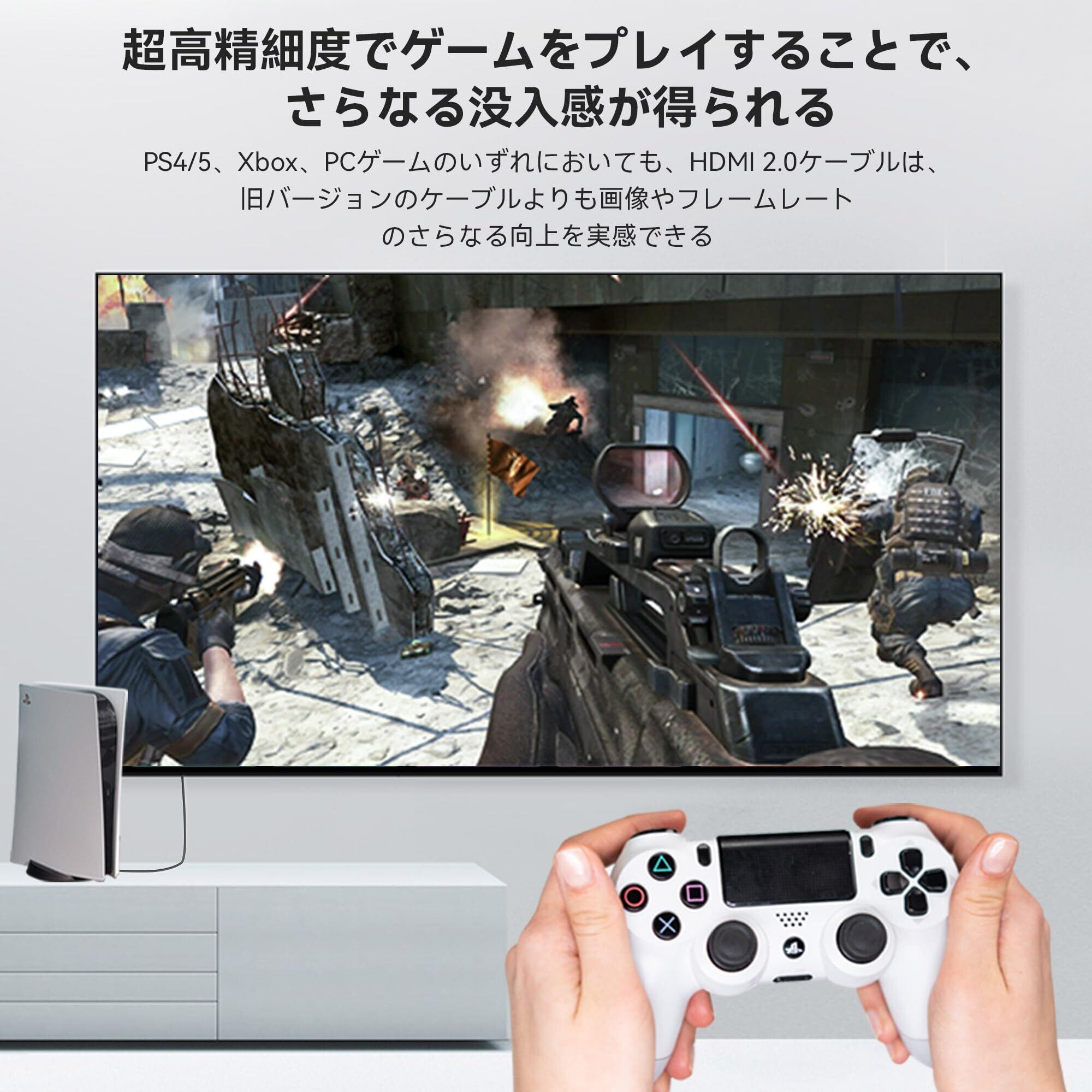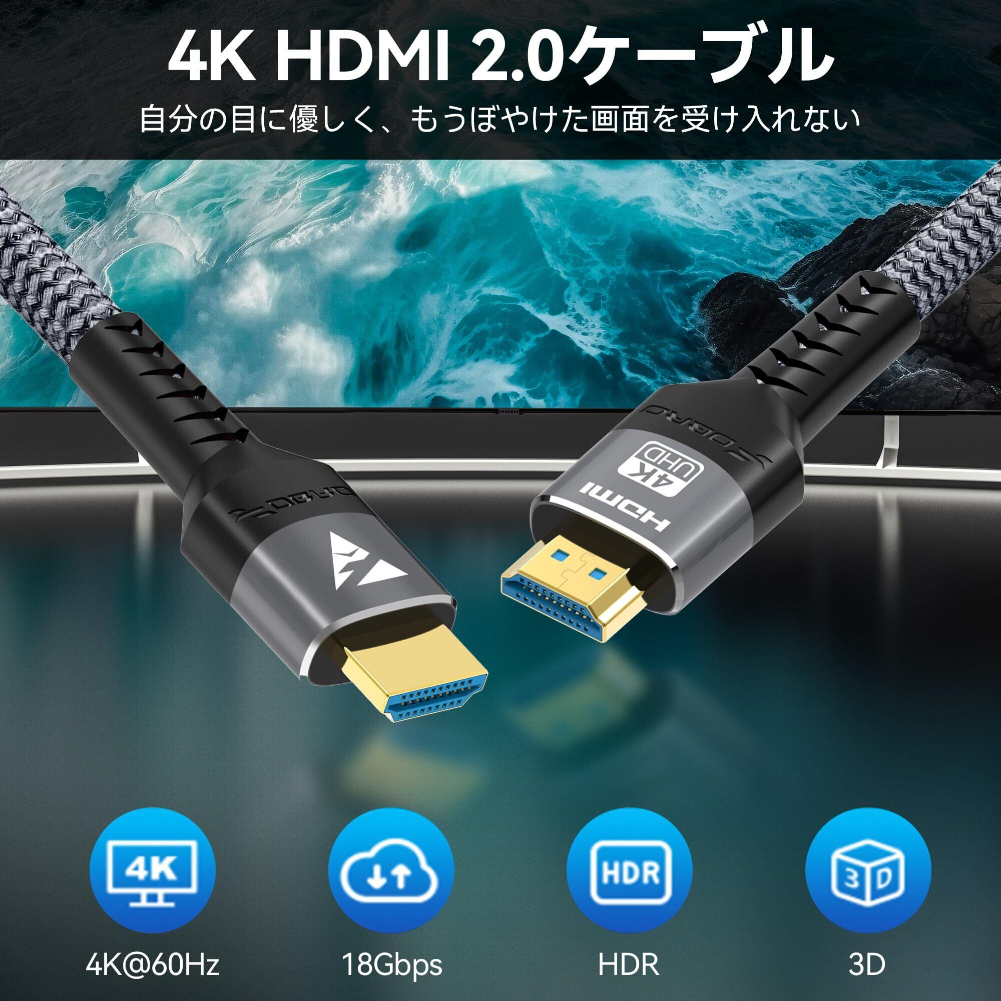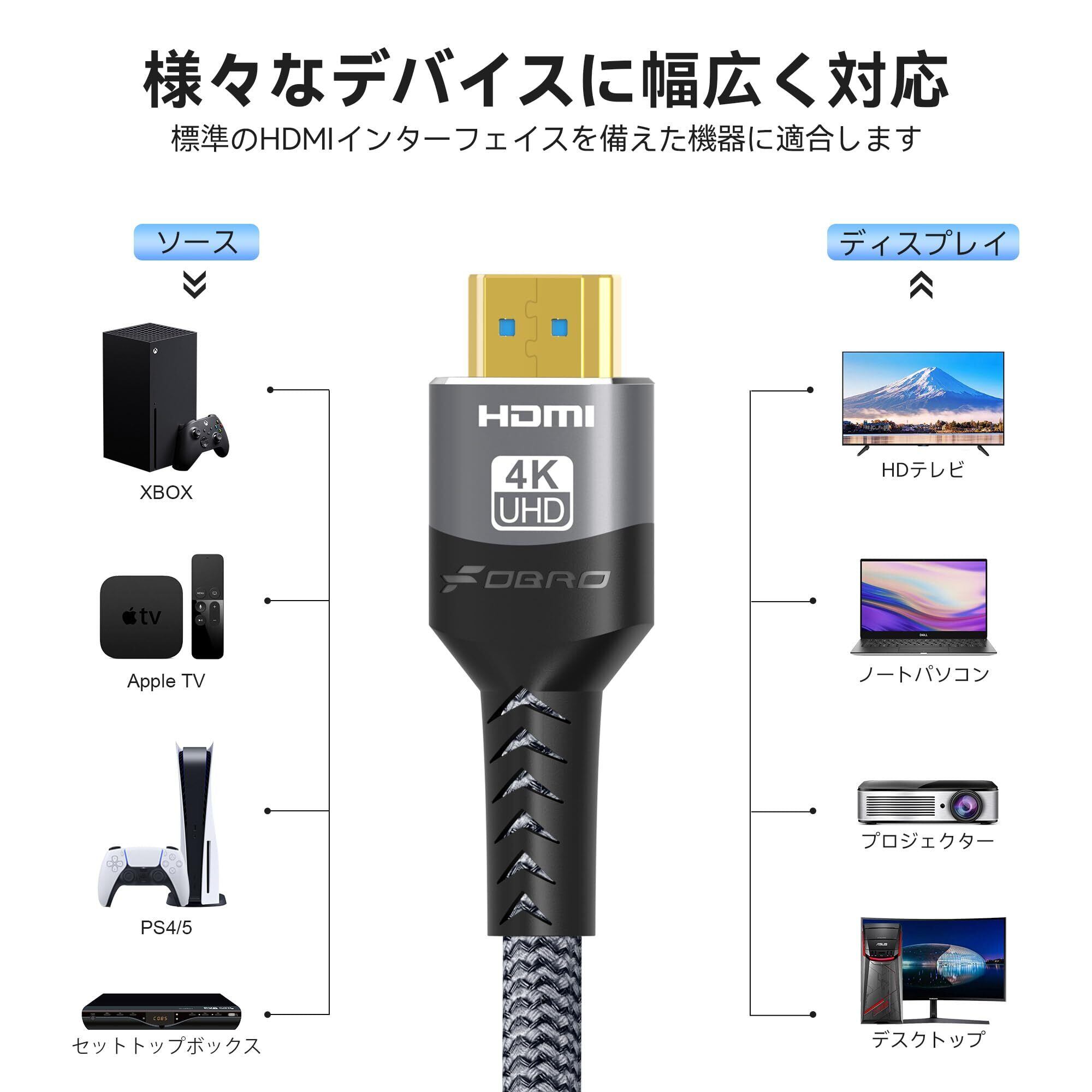 FDBRO 4K HDMI ケーブル UltraHD 18Gbps オス-オス 4K@60Hz 2K@144Hz HDR ARC 3D HDCP 2.2 HDMI 2.0 ケーブル, HDTV、PS4/PS5、Xbox、ビデオプレーヤー、モニターなどに対応-1m