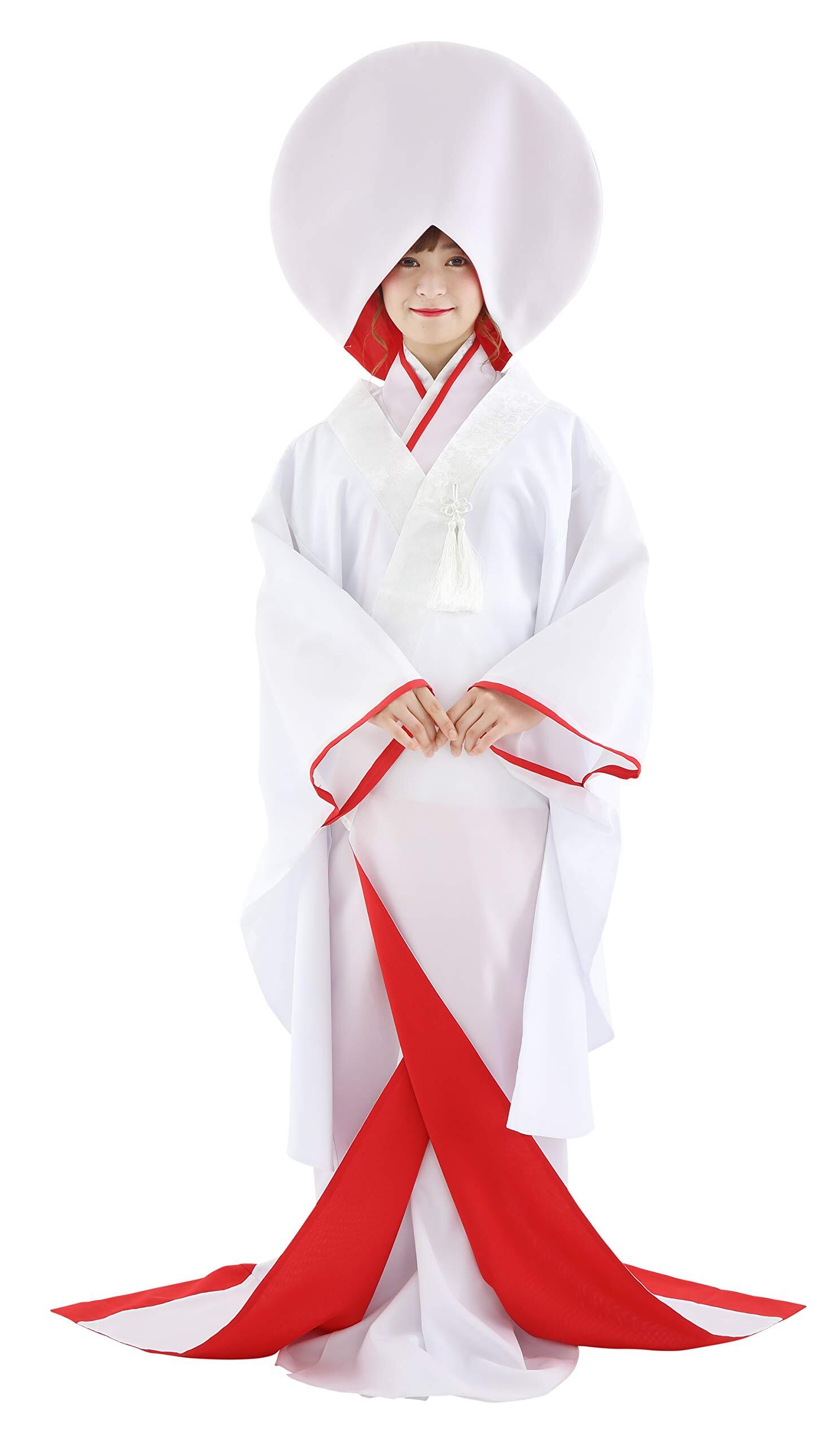 有りそうで中々無い、白無垢のコスチューム。綿帽子は、カチューシャで支えるようにして着用します。写真映えするので、年賀状、SNSや、動画などに!
