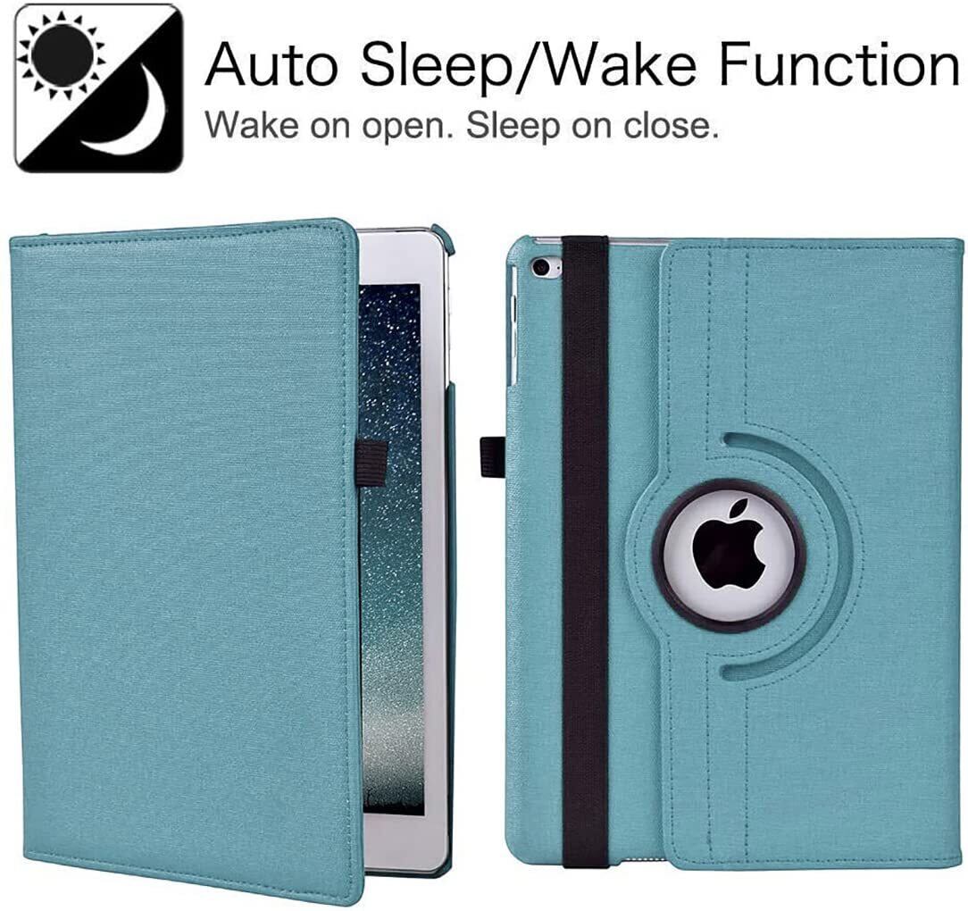 iPad 9.7 2018/2017ケース 新型(Newモデル)/iPad Air/iPad Air2カバー iPad 9.7インチ(第6、5世代)軽量 手帳型 360度回転スタンド オートスリープ機能 3段階調節可能 固定バンド 脱落防止耐衝撃 耐久性 おしゃれデニム生地 (空が青い)