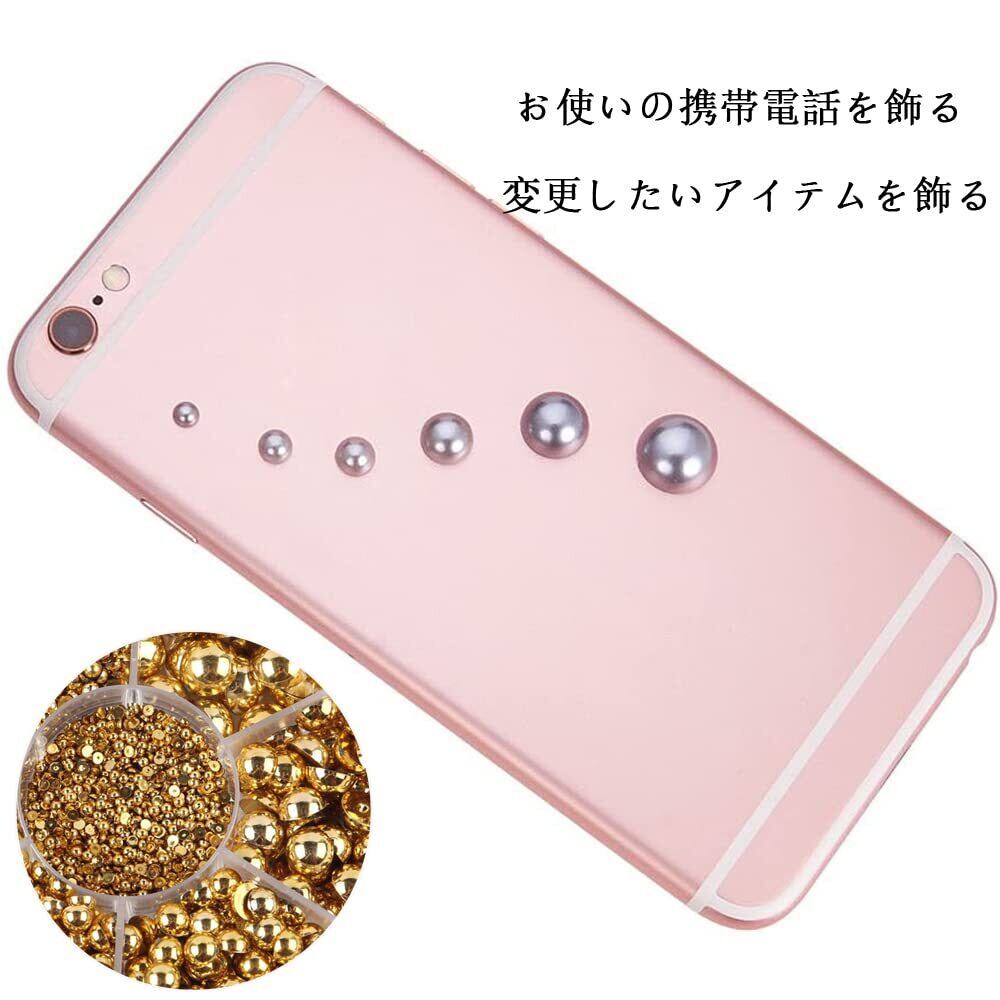 Hitasi 半円パール 3100粒 半球パール ABS パールストーン パールスカボション 2/3/4/5/6/8/10Mm 光沢 半球型 ネイルアート 衣類 携帯電話 手作りアクセサリーパーツ DIY ハンドメイド素材 手作り用品 収納ケース付き ゴールド
